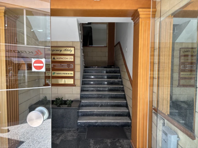 Situated in the central location of Agia Zoni, this office is on the 1st floor of commercial Building, which hosts only 3 offices (with fashion boutique on the ground floor). The space is well-designed, featuring a reception area, 3 rooms including a director’s office, 2 toilets, a small kitchen, a computer room, and a spacious open-plan area facing Makariou Avenue.