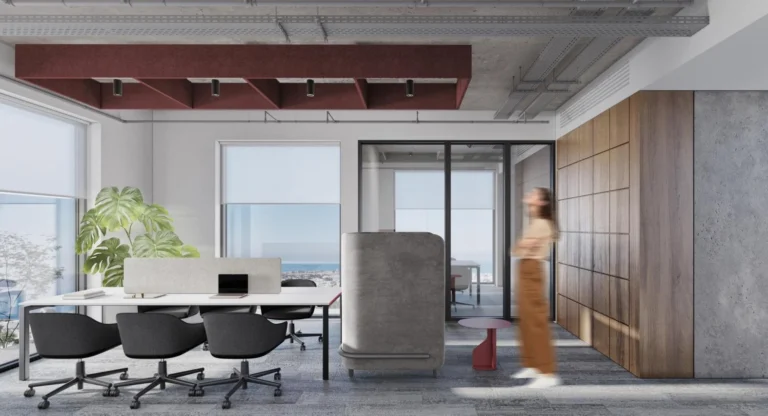 This office space combines contemporary design with advanced features, offering a professional environment tailored for productivity, comfort, and style. Every detail has been carefully planned to create a workplace that reflects both functionality and sophistication.