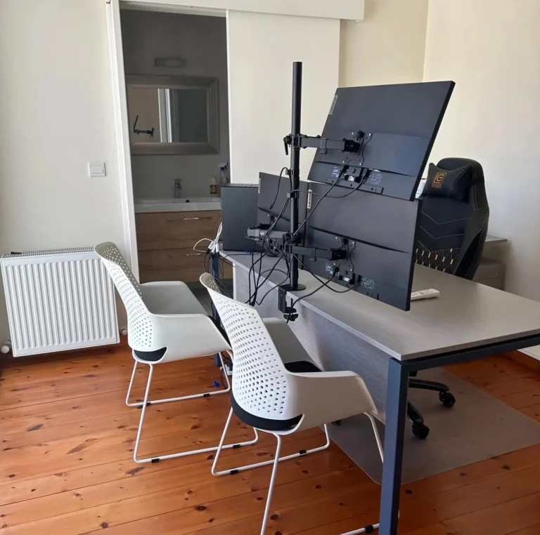 Office space for rent. Air conditioning in all rooms. A small kitchen with furniture, with a refrigerator and a set of electrical appliances. Open veranda. 2 bathrooms. Includes 7 parking spaces. Located in the Omonia area.