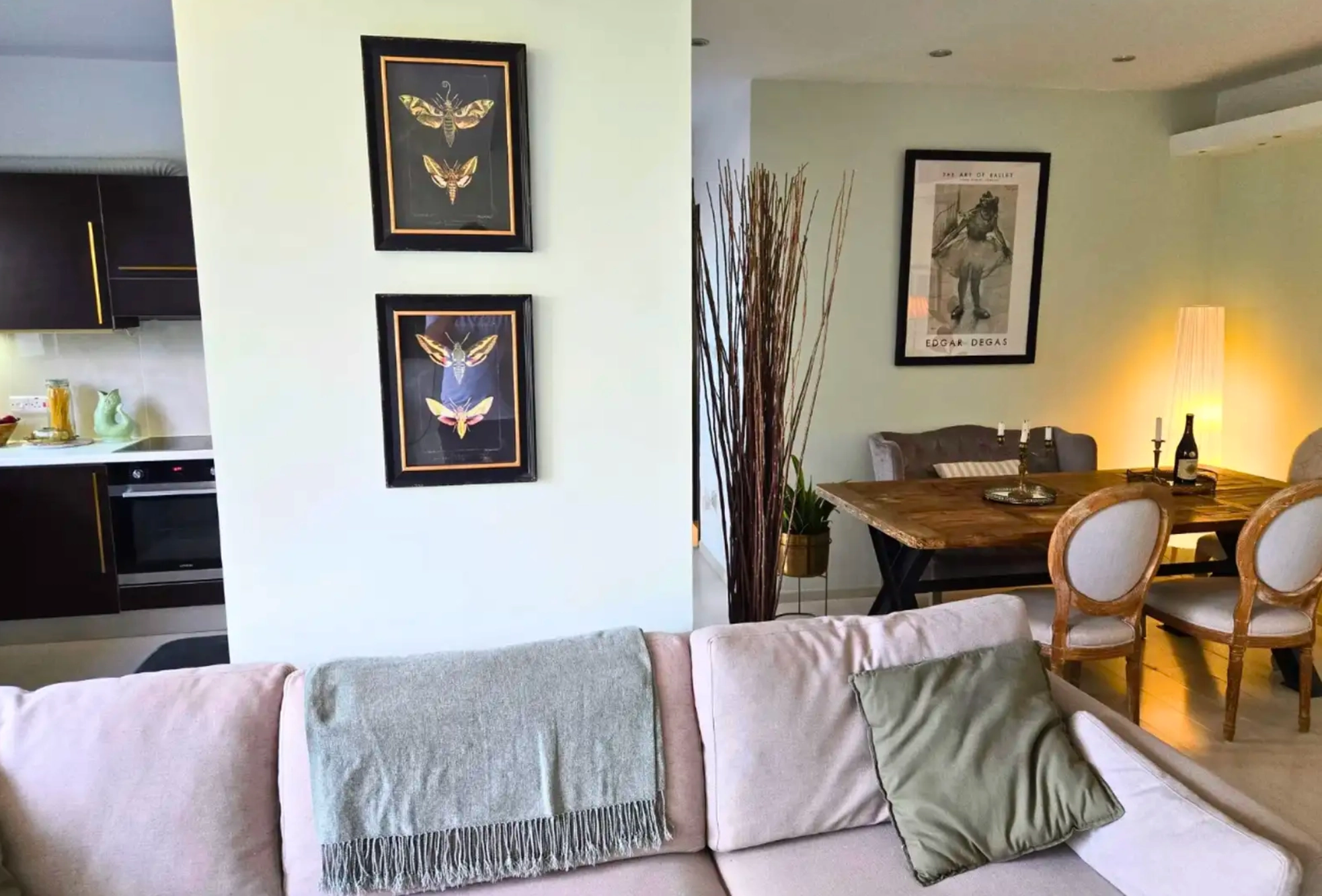 This renovated apartment is located in a prime position overlooking the famous Larnaca Salt Lake, offering beautiful views and a serene living environment.