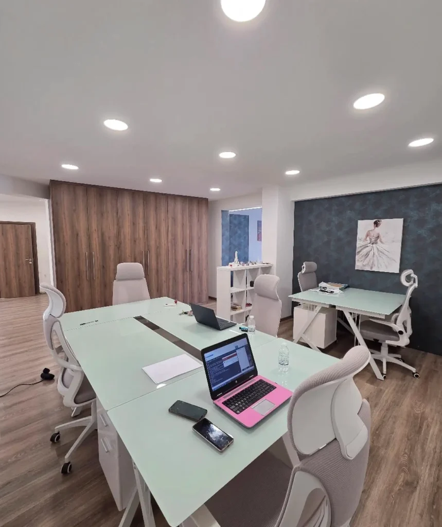 The space is fully serviced and furnished, with all utility bills included. Tenants benefit from private parking, shared meeting rooms, a rooftop lounge, and high-speed fiber internet, creating a professional yet dynamic environment.