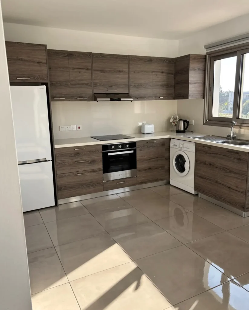 This modern apartment is situated in Meneou, just a short drive from the beach and Larnaca International Airport. It is part of a recently built residential building, designed for comfort and style.