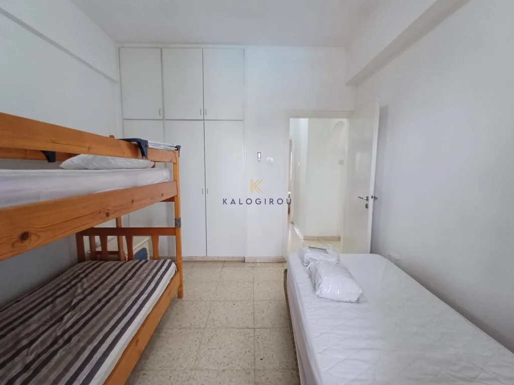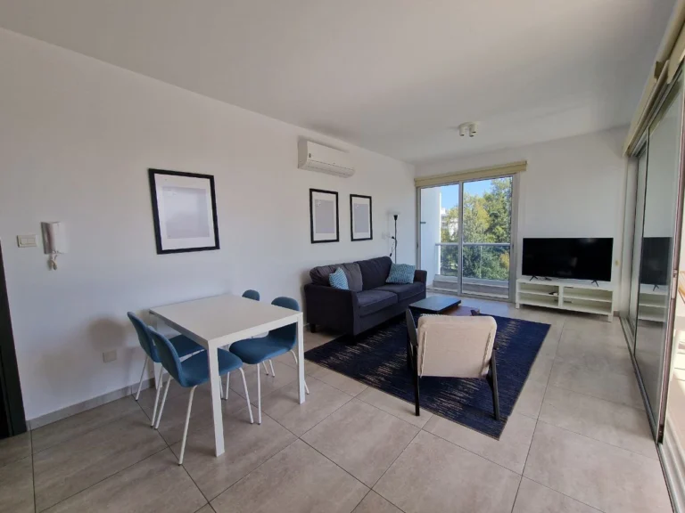 Apartment for Rent in Dekeleia Road, Larnaca. The apartment is in a complex with common swimming pool. It has internal covered area of 56 sq. m, is fully furnished, has electrical appliances, A/C in the bedrooms and consists of an open plan kitchen, living and dining area, two bedrooms, one bath with wc and a balcony with pool view. The apartment is partly sea view.