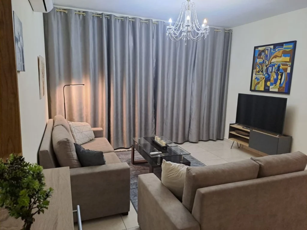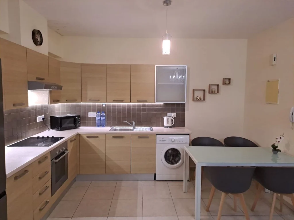 Fully furnished and equipped with household appliances 2-bedroom apartment for rent in the picturesque Mazotos area. Air conditioning is installed in all rooms. Spacious covered veranda of 18m2. General expenses and garbage collection tax are included in the price. It is possible to transfer utility bills to tenants. Rental conditions – one deposit. The complex is located within walking distance from the store. The entire city infrastructure is a 5-minute drive away. The center of Larnaca is 25 minutes by car. Pets are available on request.