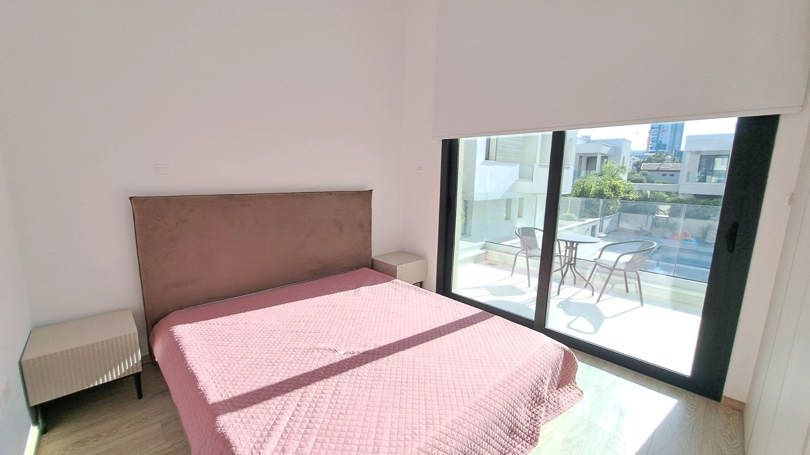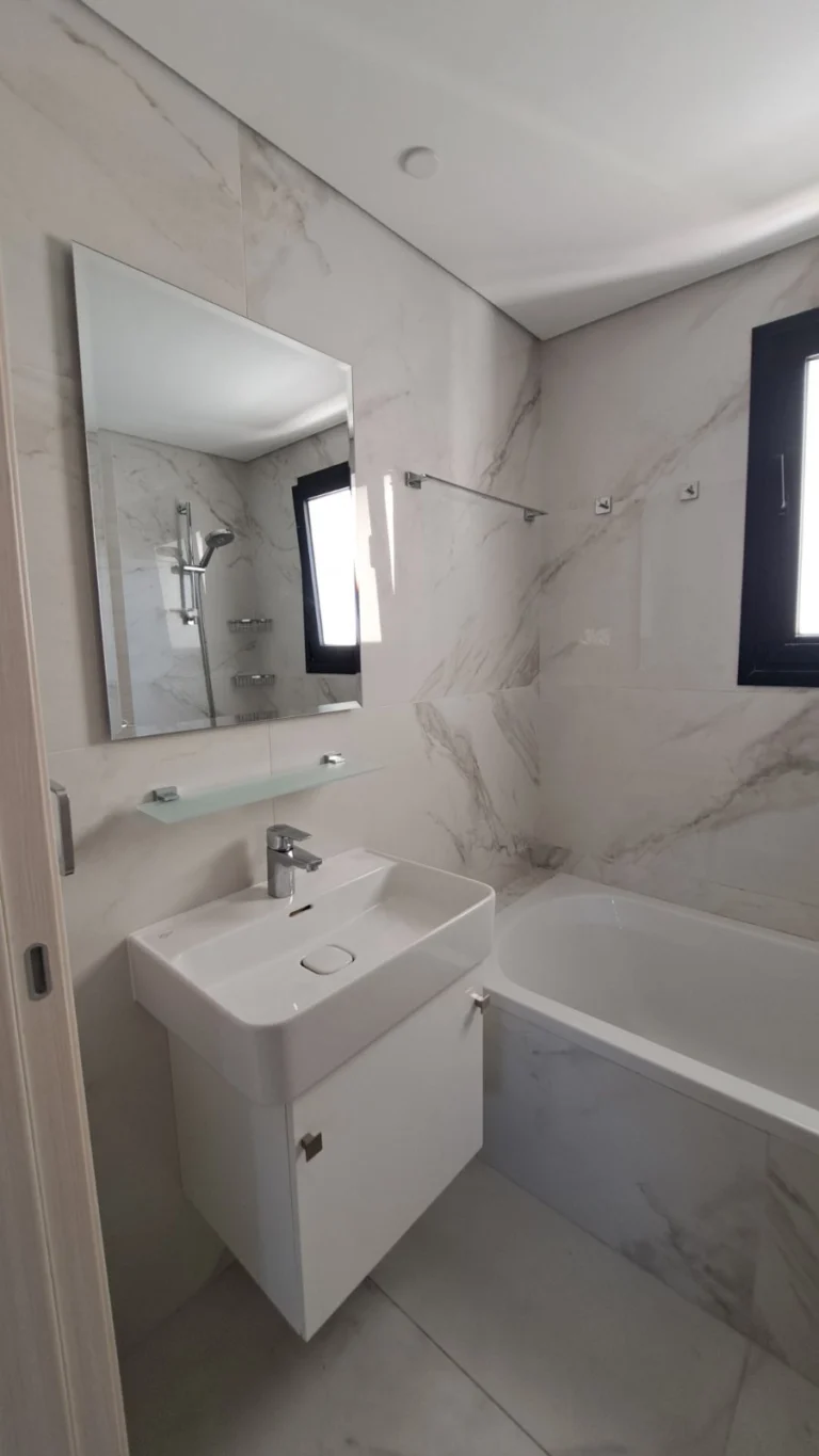 Bright and specious 3 bedroom apartment of 130 Sq.m.total covered area, situated on the 1st floor of the new modern building delivered in 2021, located in Germasogeia tourist area, at the gated complex with common swimming pool. The property has 2 W/C’s, 1 bath, will be rented furnished, with A/C’s and electrical appliances, covered parking and storage room.