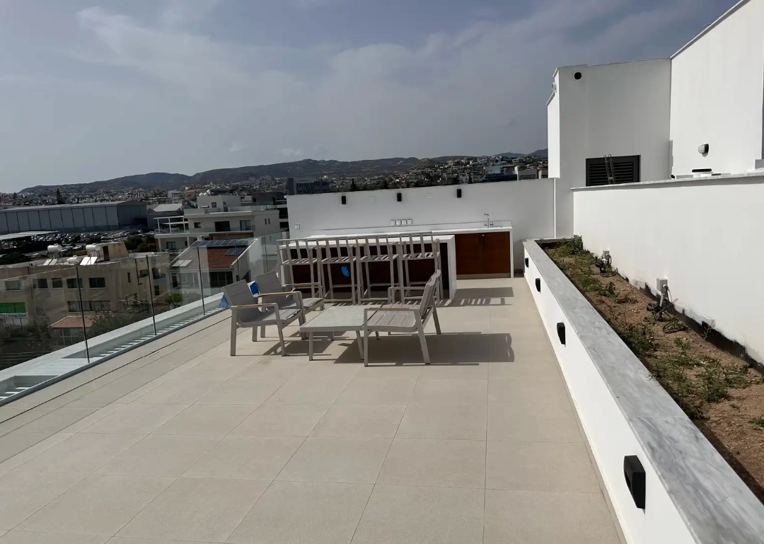 Luxurious 3 BR Penthouse of 200sqm in a brand new 3 store building situated in a very quiet neighbourhood in Columbia/Germasogia area, which is close to all amenities, such as supermarkets, pharmacies, banks, schools and kindergartens, with smooth access to the high way, 5 min drive to the sea. It consists of an open plan living/kitchen area facing a spacious outdoor covered veranda of 60 sqm with amazing panoramic and sea views. There’s 1 double bedroom with a spacious balcony offering panoramic views as well, as a family bathroom. There’s a storage of 10 sqm and a covered parking place. The property is built using high-end materials, such as double-glazed thermal isolated windows, A/C, wooden parquet flooring, high-quality sanitary wear and electric appliances, and solar panels for hot water preparation.