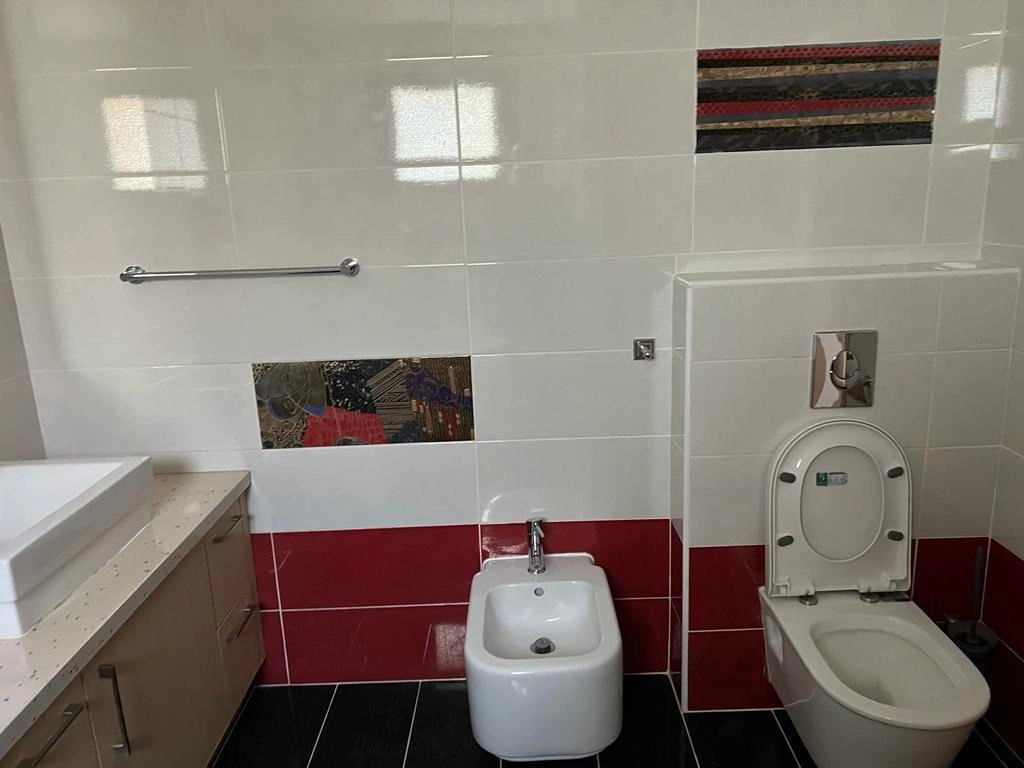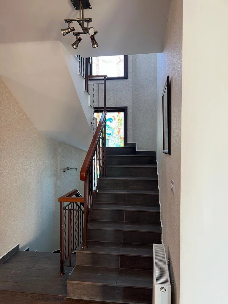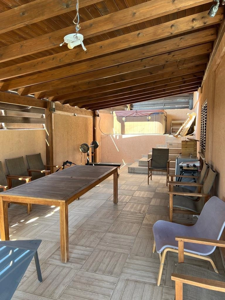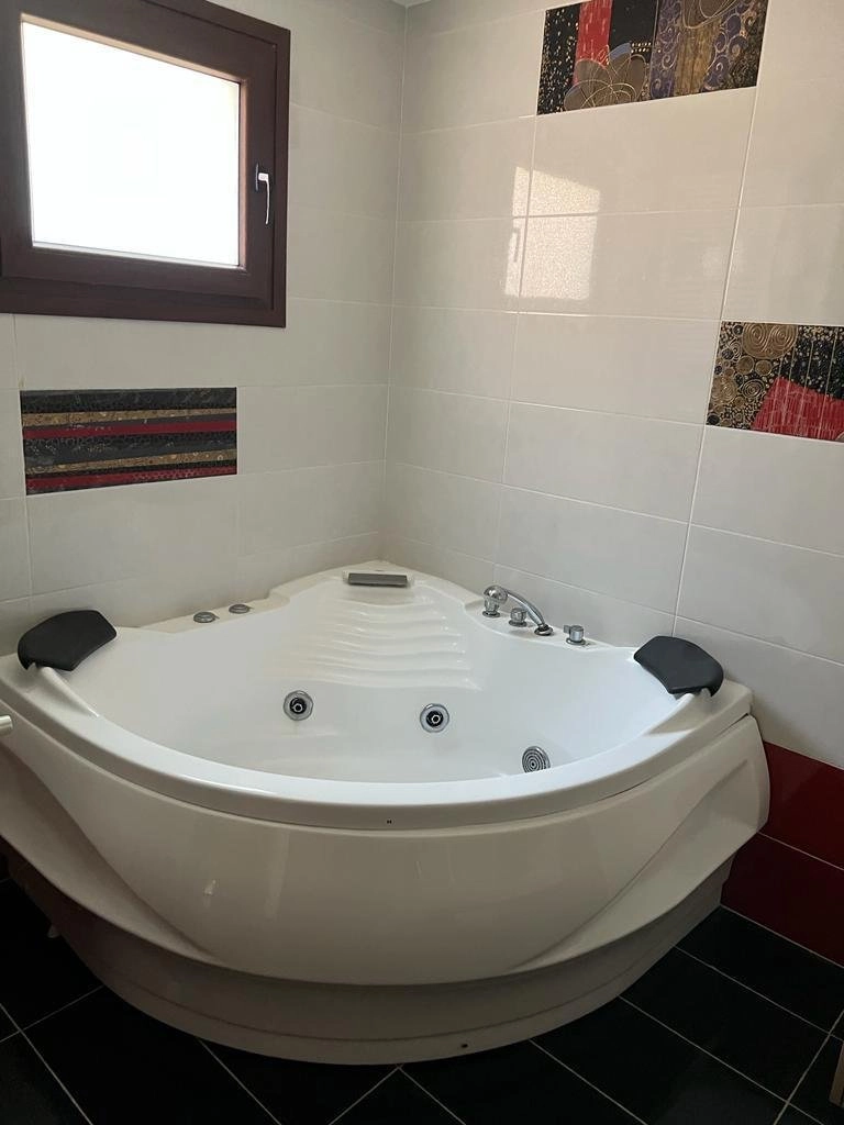 Beautiful family home of around 300 m² (plus large basement) on an 800 m² multi-level plot. Features 5 full bedrooms + 1 extra room, 4 bathrooms, 2 kitchens, covered veranda, swimming pool, jacuzzi, BBQ area, and a fruit garden. Equipped with alarm system. Conveniently located just 2 minutes from the highway exit — ideal for comfortable family living.
