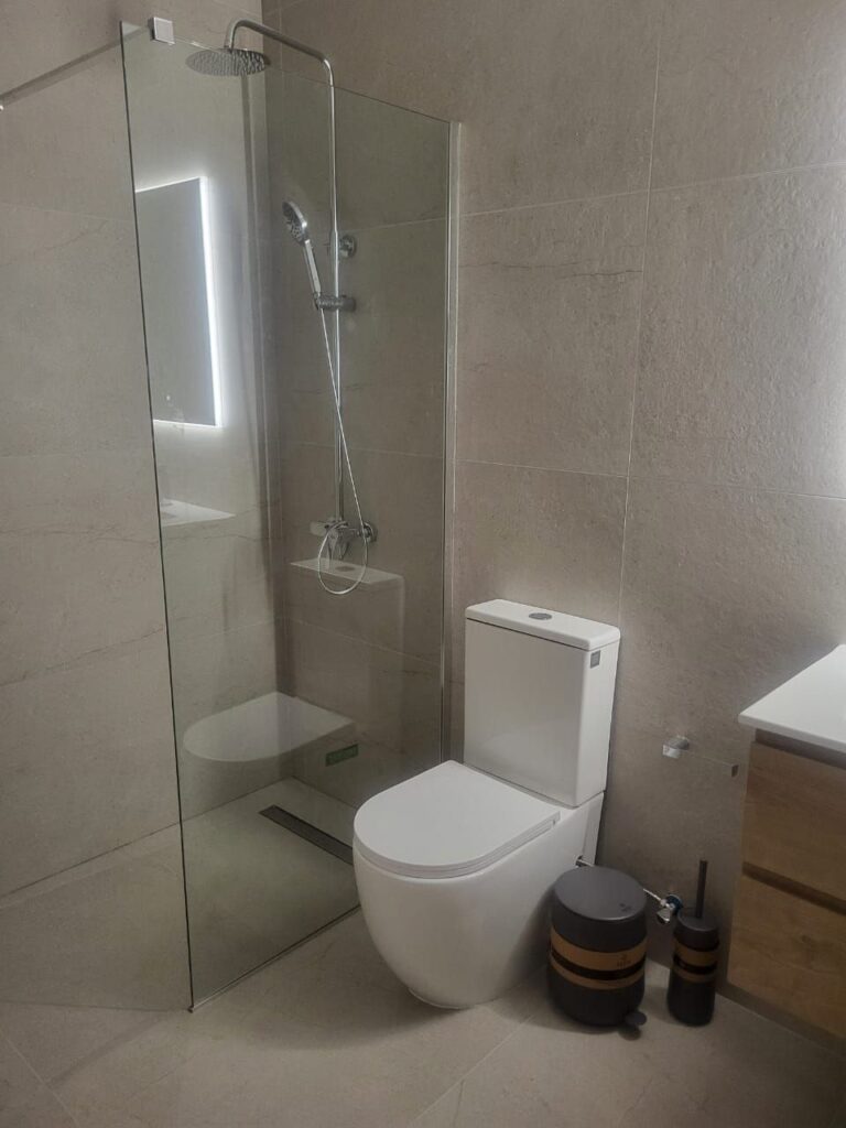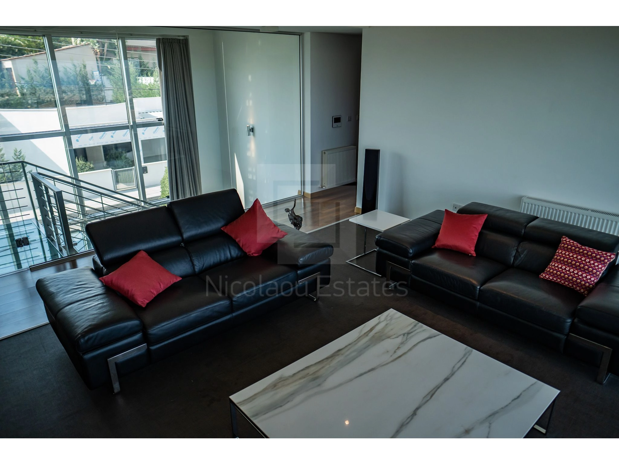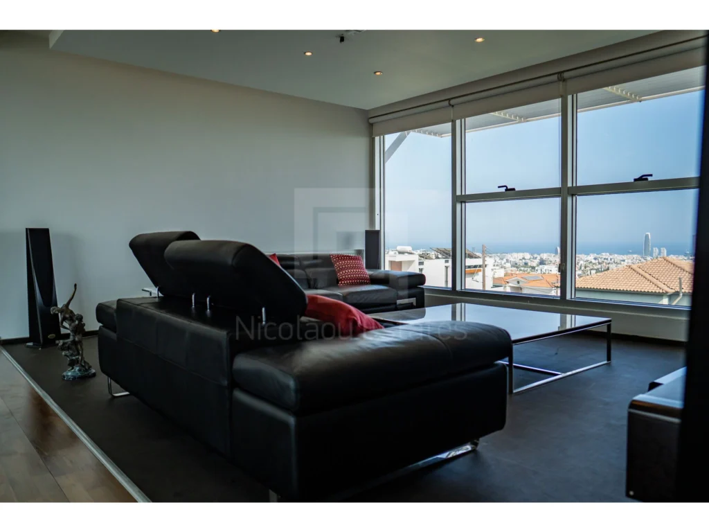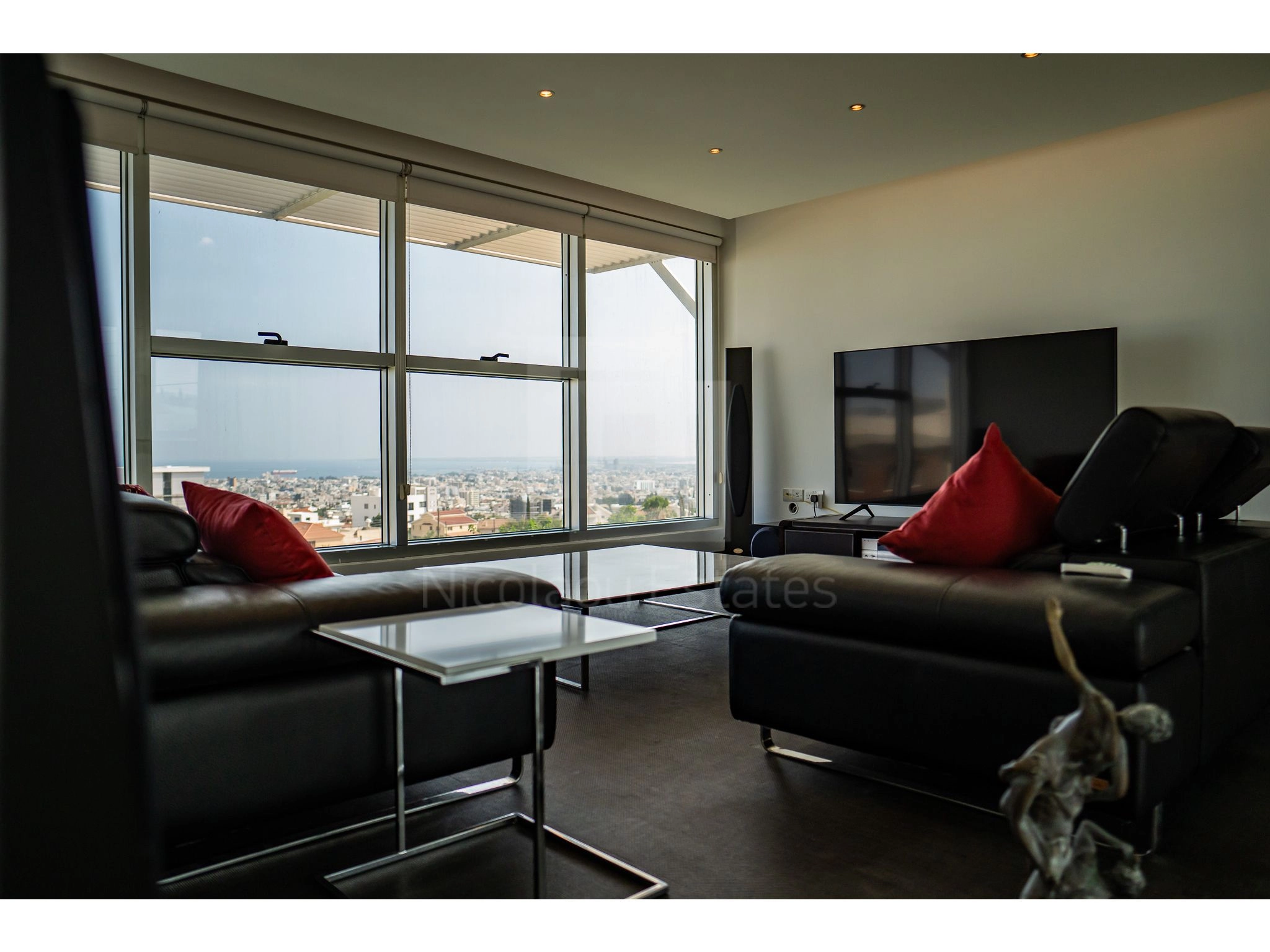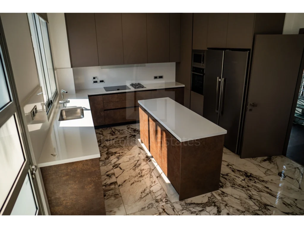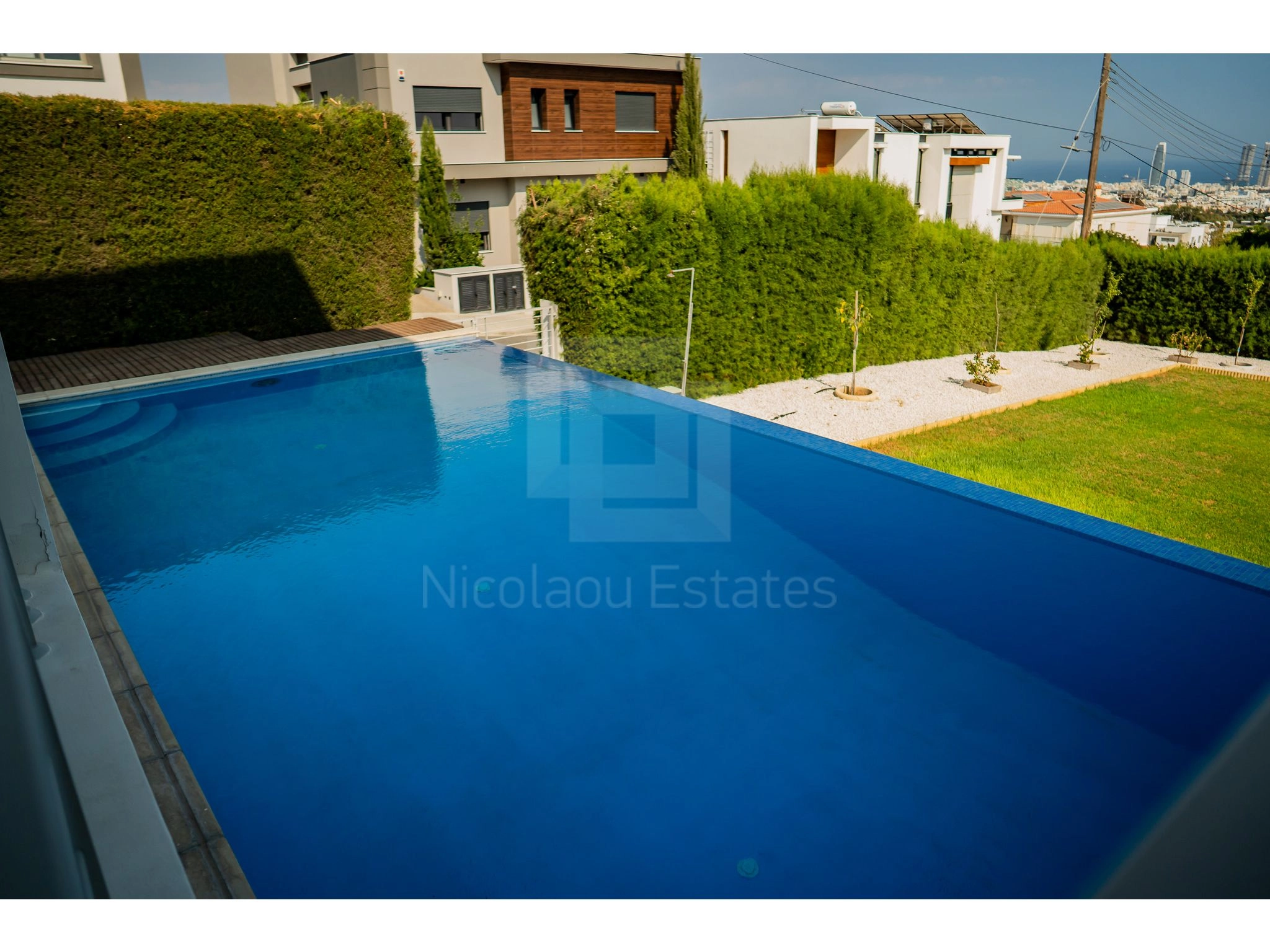 FEATURES 3 level modern villa House area 465m2 Land 1200m2 Veranda 120 square meters with view of the limassol bay 1st level independent studio with bathroom with 2 rooms also an office can also be used as a bedroom and a laundry room 2nd level separate kitchen with 2 island bars. Also huge open space dining and sitting room and a toilet 3rd level 3 bedroom the 2 en suite and a huge cinema living room with a surround system House has photovoltage alarm system video with remote open door bell. Automatic irrigation and watering system Wifi system for all levels Central heating Air conditioning throughout Automatic gate Two cover parkings