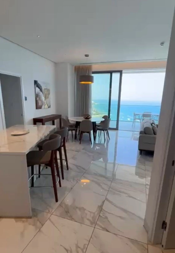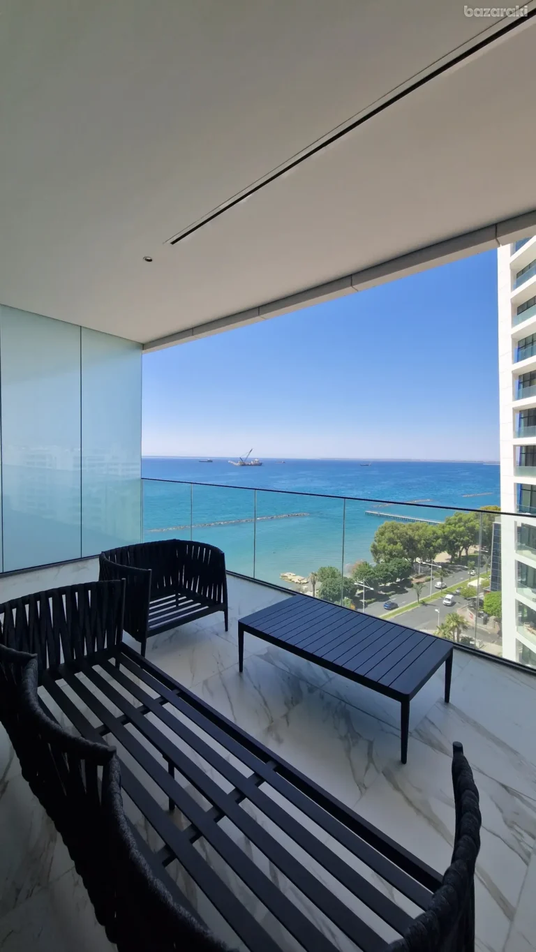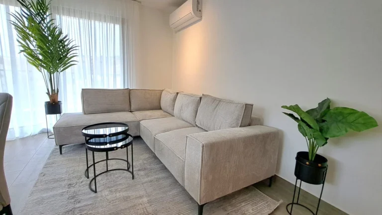 A new one-bedroom apartment for rent in a prestigious residential complex in the Neapolis, Limassol area near the marina. This apartment is located within walking distance from both the beach and the bustling city. The apartment consists of an open-plan kitchen and a living room. There is a laundry room. Thanks to the unique design, every corner of the apartment has a sea view. The complex has a communal swimming pool and an indoor pool. The apartment can be fully furnished and already equipped with household appliances. Air conditioners are installed. There is a covered parking.