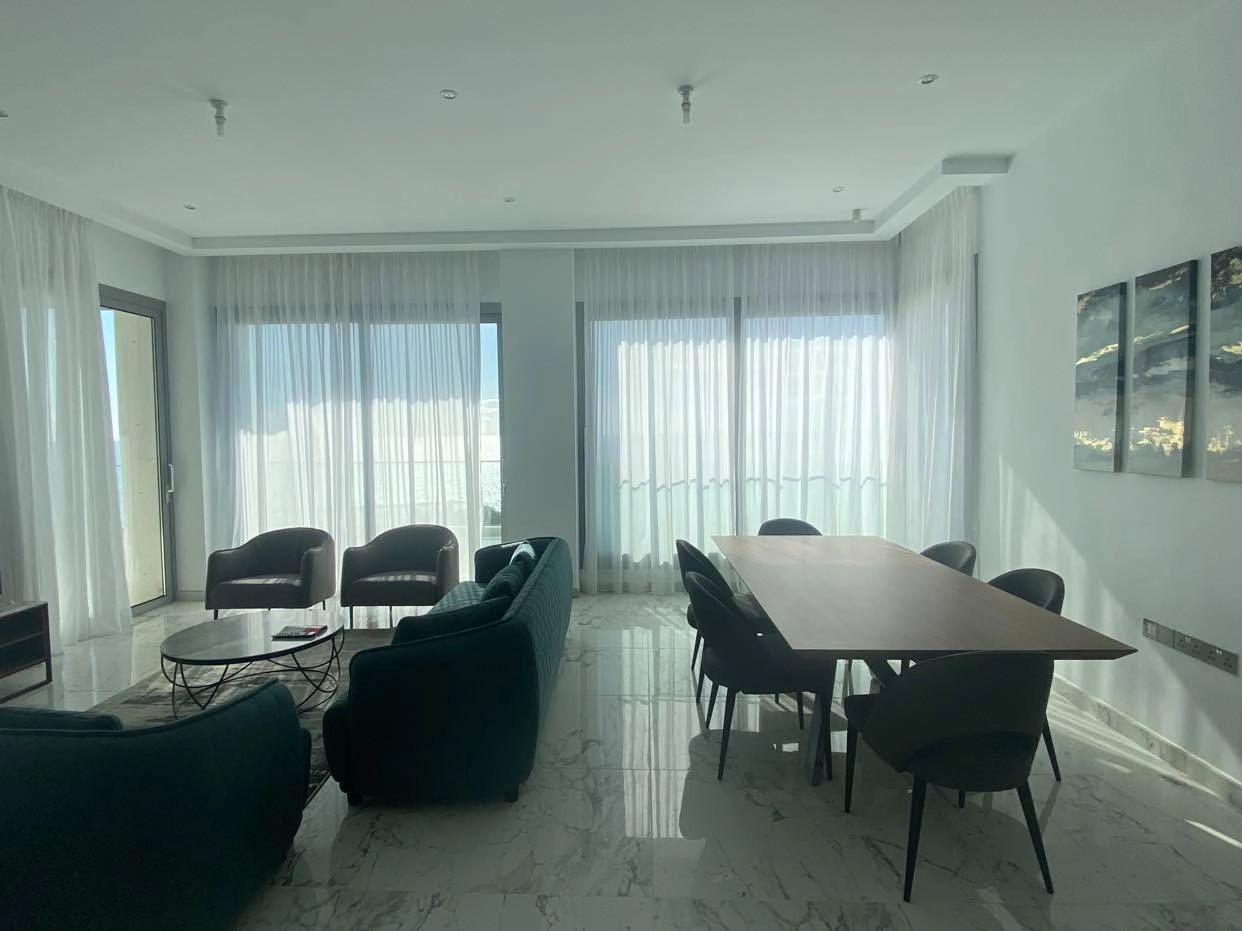 For rent a new luxury 3 bedroom apartment with panoramic sea views, 20 meters from the best beaches of Limassol in the area of Agios Tikhonas. There are 28 premium class residences in the project, the highlight of which is the use of natural materials in the design of rooms: marble, granite and wood. Each residence is equipped with a underfloor heating system and VRV air conditioning. At the disposal of residents there is a tennis court, a public swimming pool, a sauna, a gym and an underground parking. Safe leisure and accommodation in the complex are provided by the security service and CCTV surveillance.