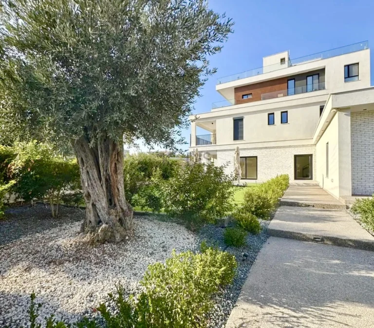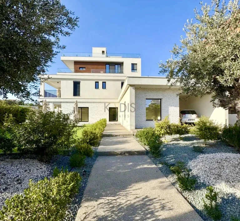 Exclusive 5-bedroom villa in Germasogeia’s Columbia area, featuring contemporary design, spacious interiors, and a private landscaped garden near the beach.