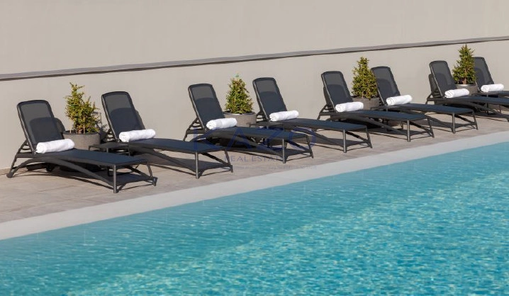 The apartment was built in 2021 and combines modern design with energy efficiency, rated class A, and features underfloor heating throughout. It comes fully furnished with high-quality furniture and appliances, allowing you to move in without hassle. The gated complex offers excellent facilities, including a communal swimming pool and a fully equipped gym for residents.
