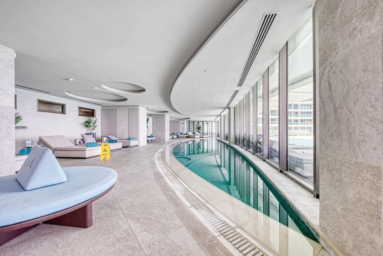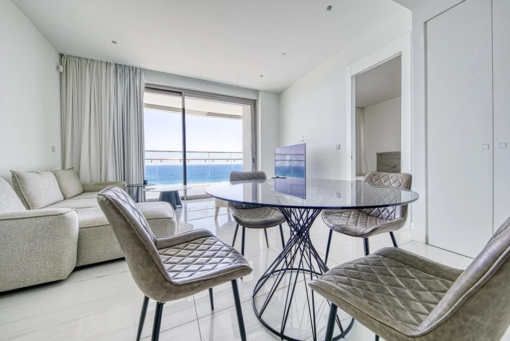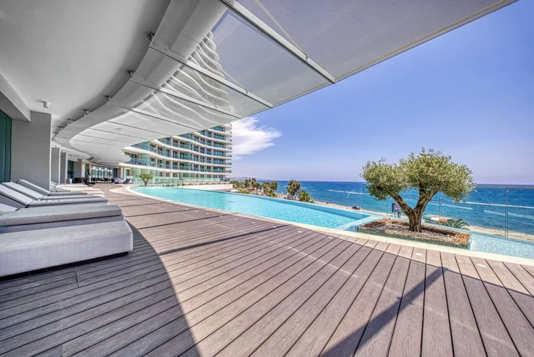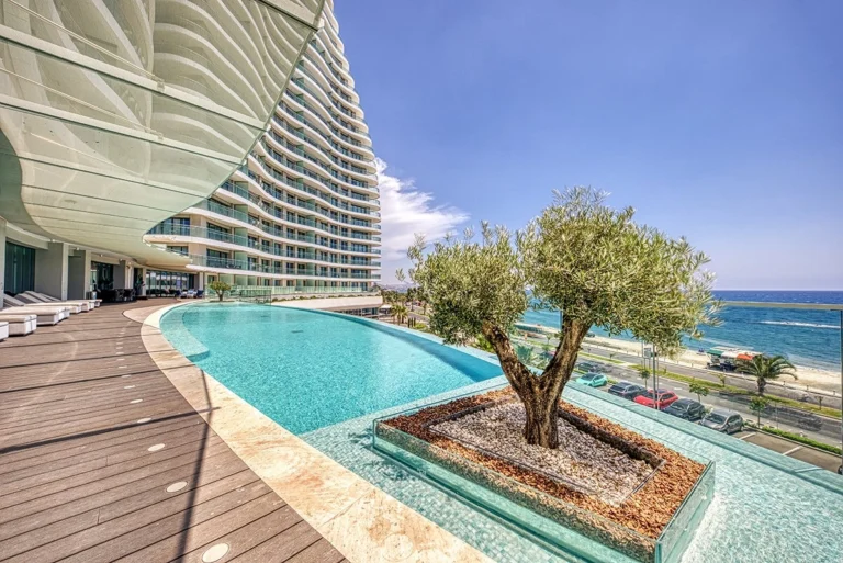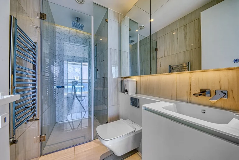 This apartment is situated in the Potamos Germasogeias area of Limassol, on the seventh floor. Unit 702 offers two bedrooms and three WCs, with an indoor area of 101 square meters and a covered veranda of 36 square meters. The property includes one parking space and has an energy efficiency rating of category A.