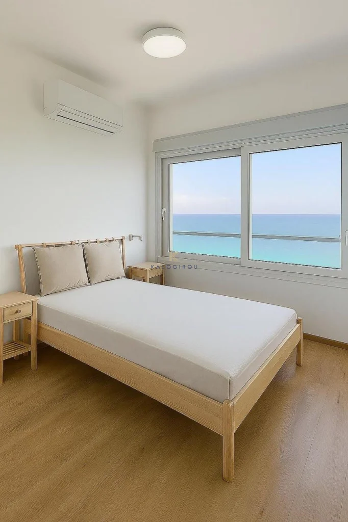 The beach front flat consists of a semi separate kitchen and living room with dining area, two bedrooms, covered veranda with amazing sea views, one family bathroom with a shower and a toilet, new A/C, electrical appliances and it is for rent fully furnished.