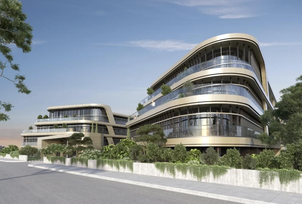 An office building for rent in an innovative complex located in Limassol, in the Potamos Germasogeia area. It is a modern design that includes two office buildings with three floors, symmetrically located along the central axial alley. The office spaces in these buildings are designed with open plans, which provides maximum flexibility, allowing you to easily adapt the spaces for both single and multiple use. The project offers a total covered area of 8000 m2, providing a modern and versatile working environment.