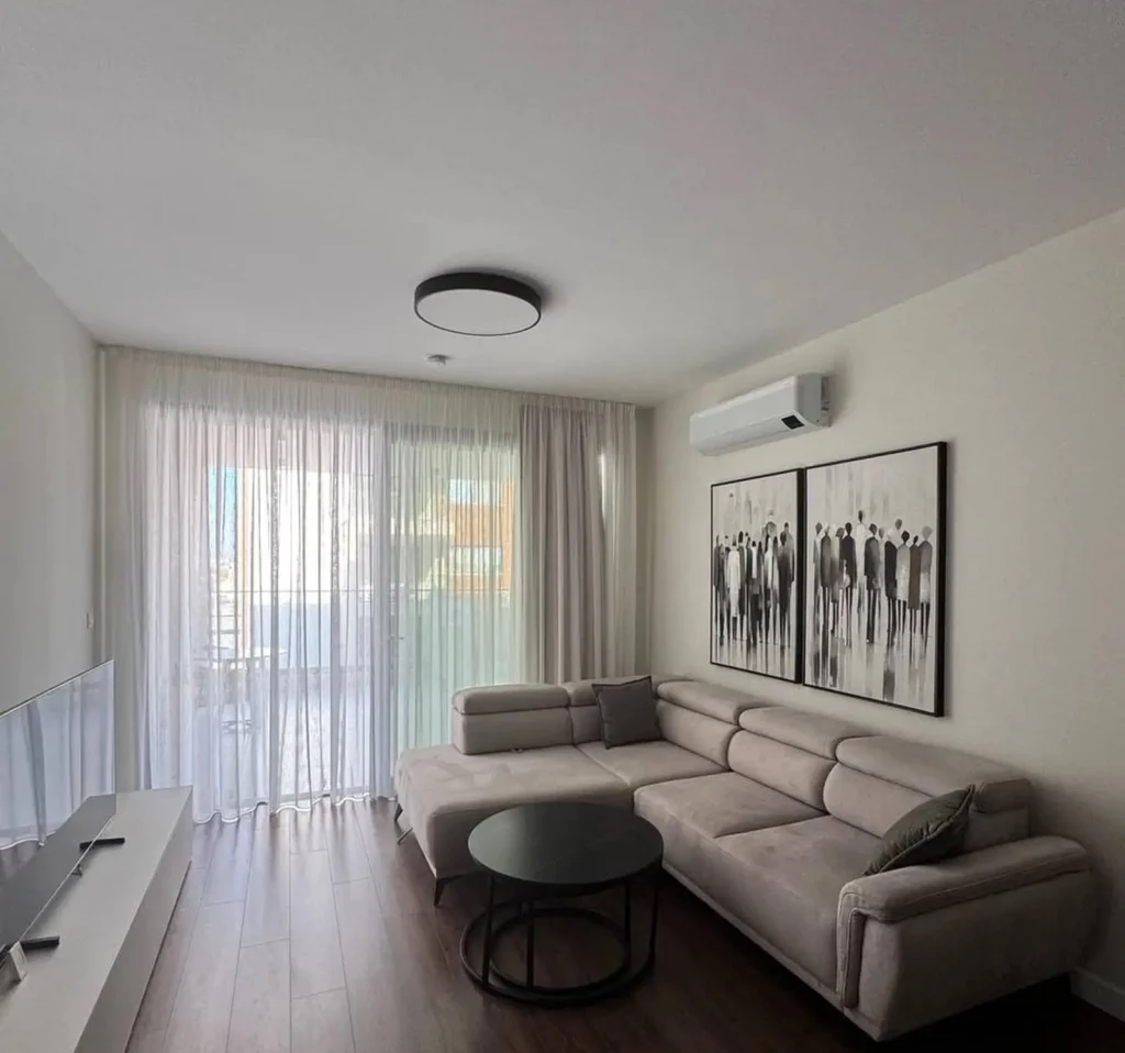New 2 bedroom apartment for rent in Zakaki area, Limassol. The 98 m2 apartment is located on the 3rd floor, fully furnished and equipped with household appliances. The layout includes: a living room with a fireplace, an open kitchen, two bedrooms, two bathrooms and a spacious balcony with sea views. There are underfloor heating, air conditioning in all rooms, a separate storage room and covered Parking. The complex is equipped with an elevator, alarm system, landscaped garden, lounge areas and BBQ areas. A modern residential complex in 2025 with a swimming pool, sauna, fitness room, recreation area and playground.