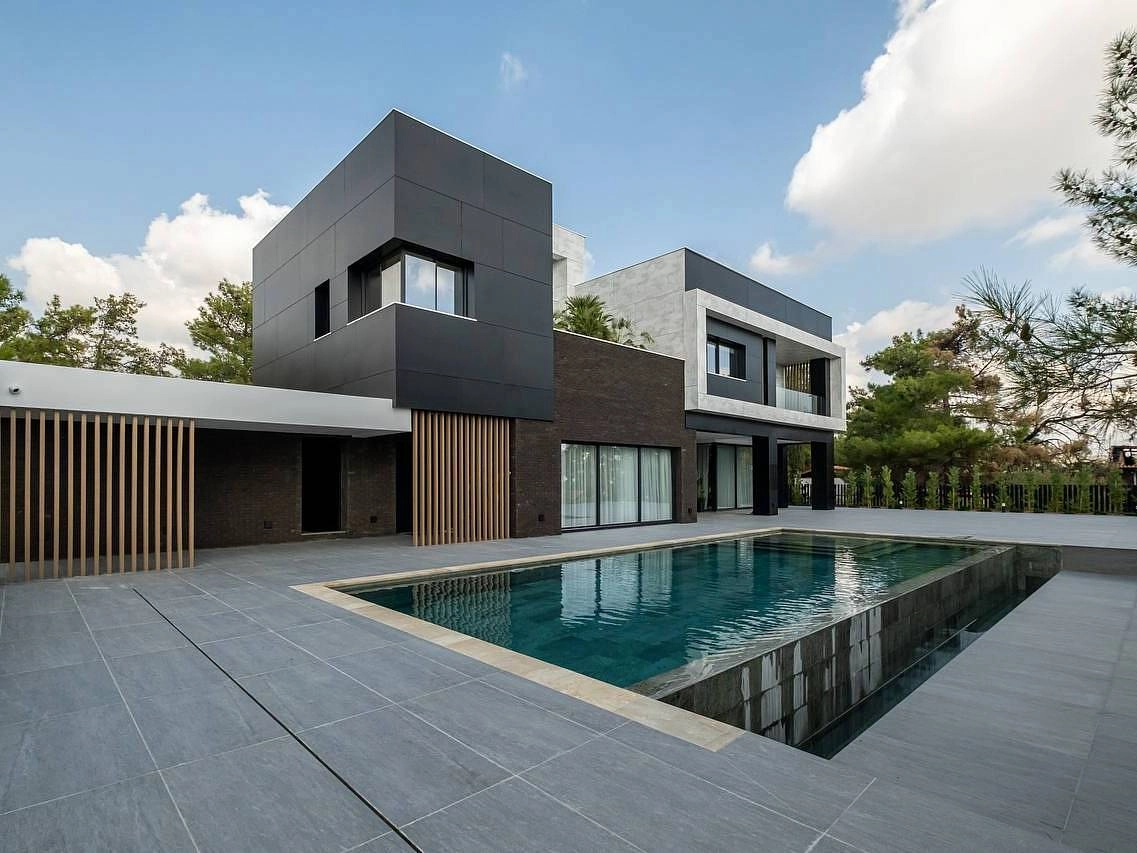 Exclusive luxury villa with 6 bedrooms in the quiet and picturesque village of Souni, which is located a short drive from Limassol and has all the necessary infrastructure and amenities such as pharmacy, supermarket, post office and primary school. On the ground floor there is a spacious living room, a separate kitchen with dining area, a game room, a guest toilet and a large veranda overlooking the pool and garden. The lower ground floor accommodates a guest/maid’s room with a shower, an office/study, a utility room, a technical/service room, 2 toilets and a very large room that can be turned into a cinema or gym. The first floor includes a master bedroom with bathroom and dressing room, a guest bedroom with bathroom with shower and a separate 3rd bedroom on this floor. On the top floor of the villa there is a large roof terrace with a beautiful view of the surrounding area. Technical specifications and finishes of the highest standard include: natural parquet throughout the house, VRV air conditioning system and water floor heating with a heat pump. Smart home automation system, alarm system, as well as CCTV cameras. 10kW photovoltaics and high-quality thermal insulation (stranded + HPL). Heated saltwater pool and Jacuzzi. There is a private well.