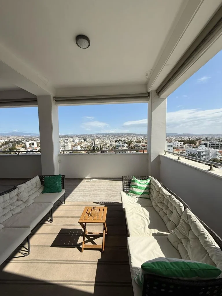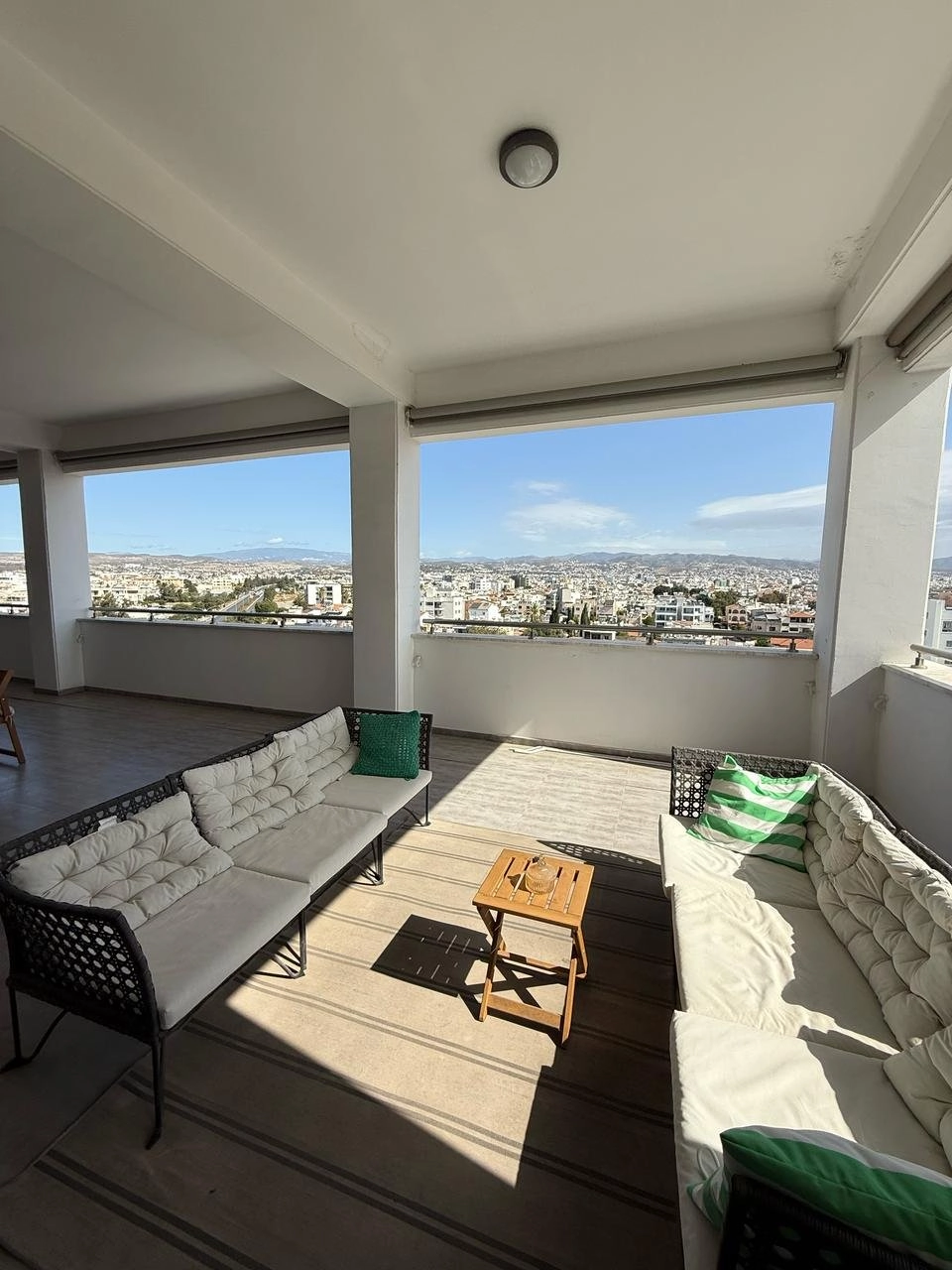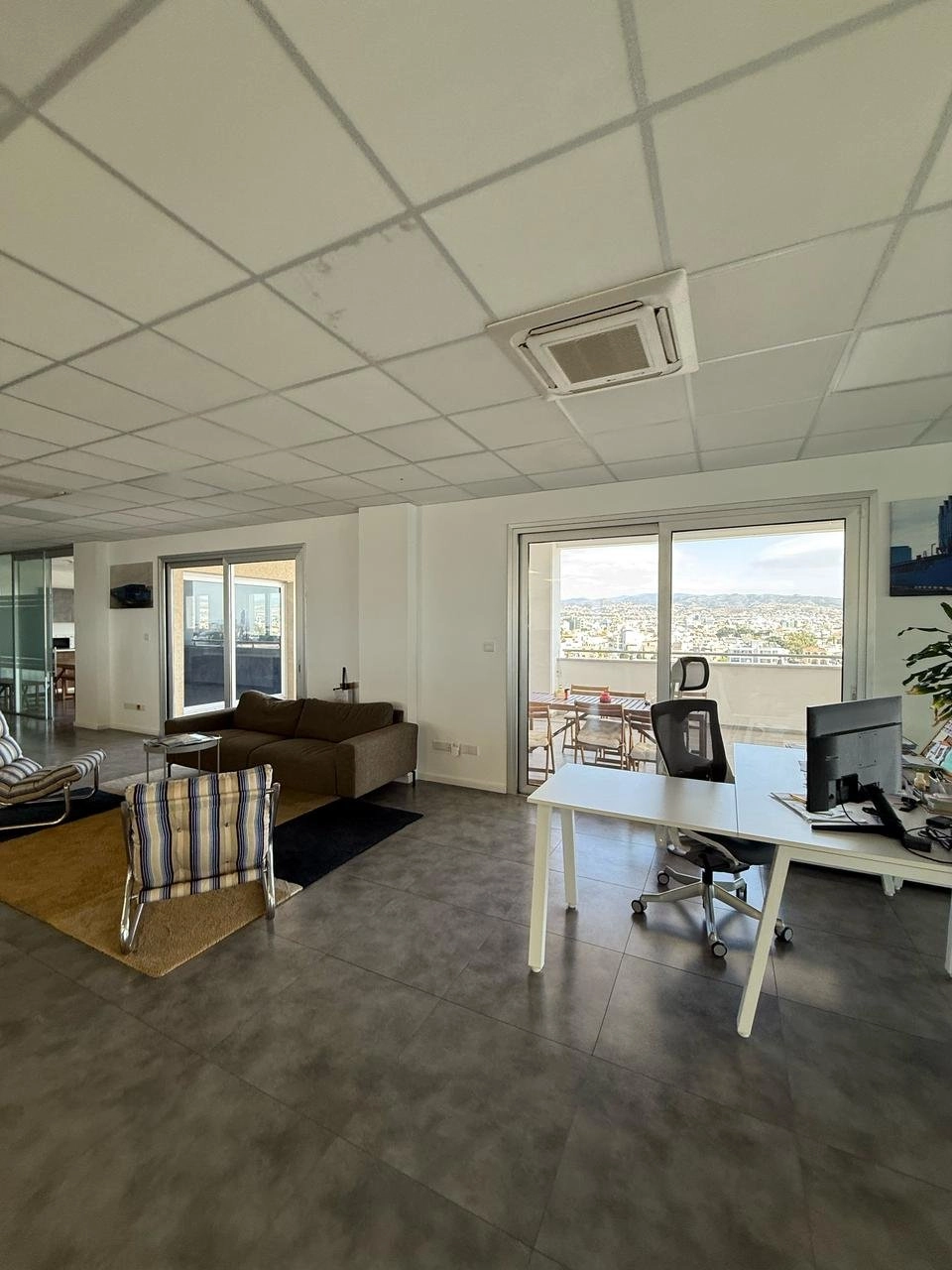 Spacious 500 m² office with a large covered veranda offering stunning sea and mountain views. The space features raised floors, false ceiling, large kitchen, server room, and 2 WCs plus a disabled WC.