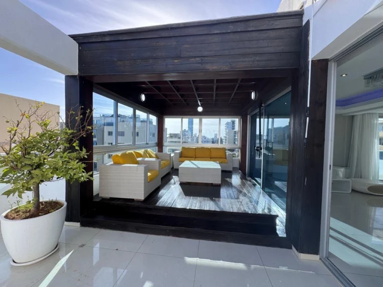 Stunning 6-bedroom penthouse in Agios Tychonas, just 60 meters from the sea. Featuring 3 en-suites, a guest toilet, open-plan living/kitchen with fully fitted Italian kitchen and bar area, plus a storage room. Covered area 358 m² with an 88 m² uncovered veranda, BBQ area, and sea views. Enjoy air-conditioning throughout, solar panels, partly furnished interiors, and access to a communal pool, tennis courts, landscaped gardens, and gated entry. Covered parking, caretaker, and outdoor lounge area complete this luxury property.