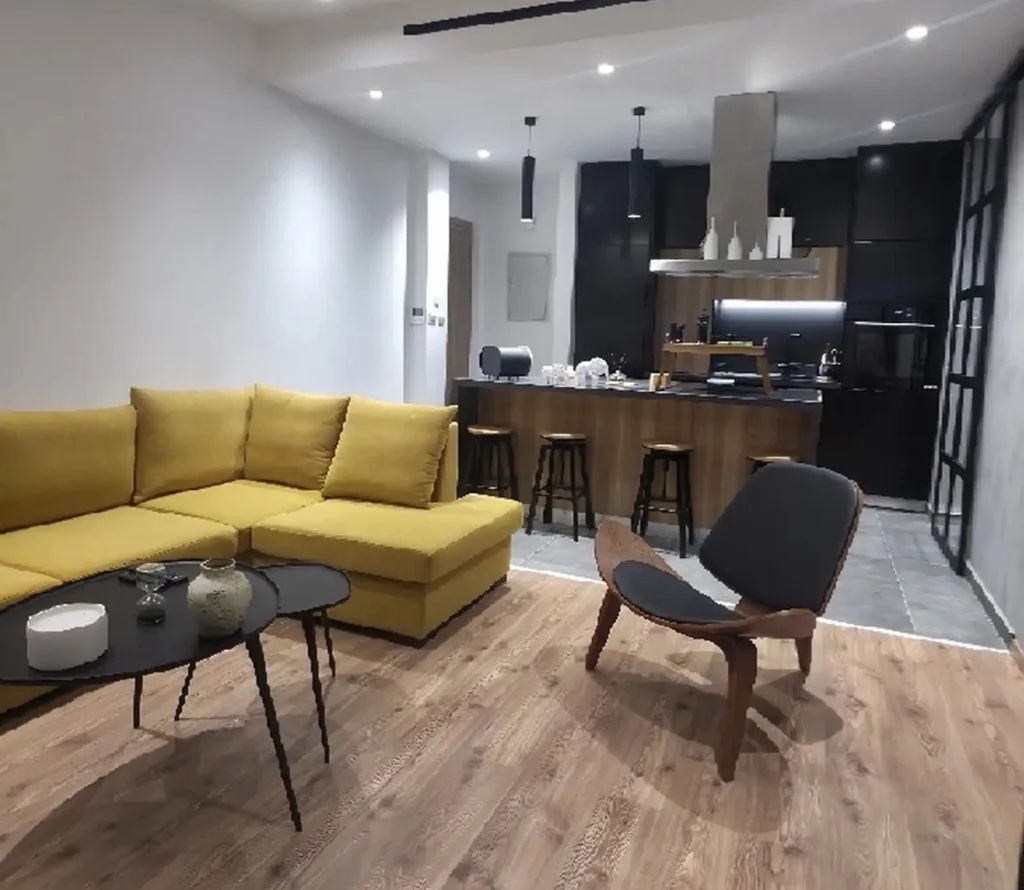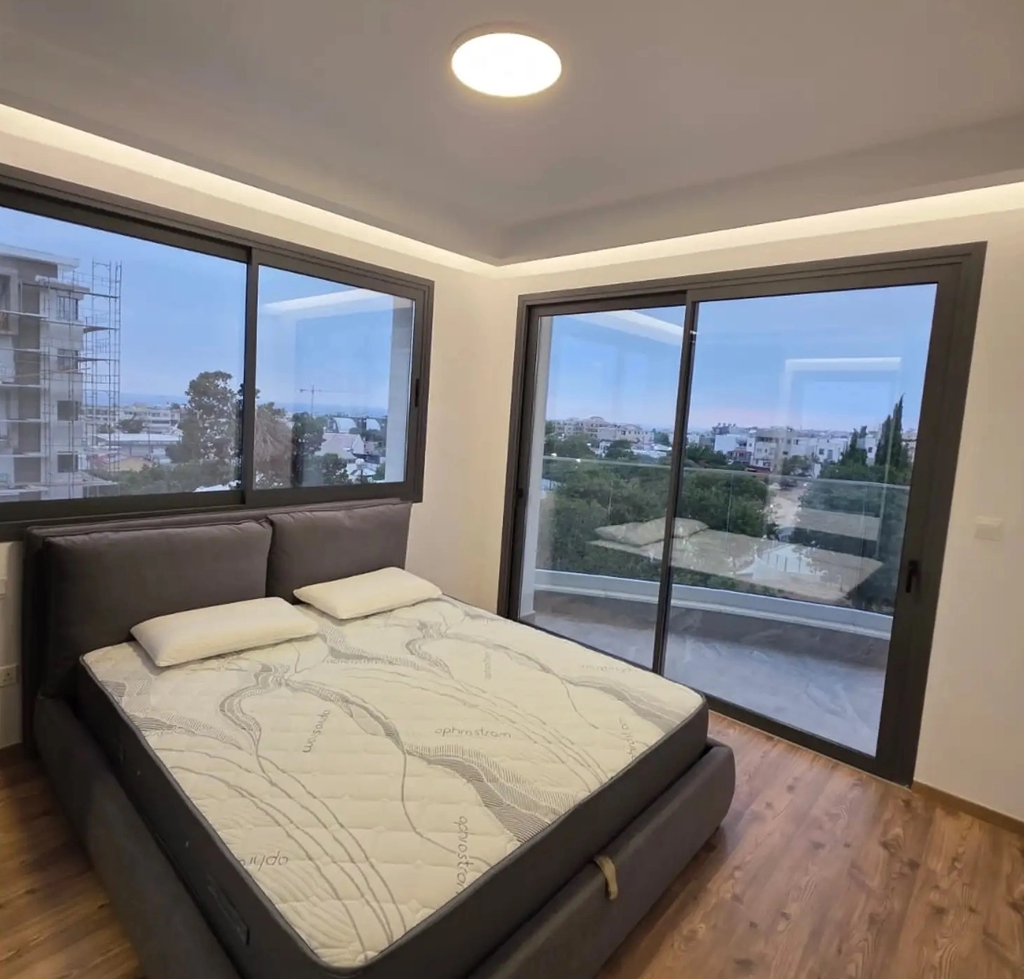One-bedroom apartment of 60 m2 for rent in the area of Town Centre Pavlos, Paphos. The apartment includes one spacious bedroom, a bathroom, a living area combined with a kitchen, and a balcony. The apartment is fully furnished with designer furniture and equipped with modern appliances, including a built-in refrigerator, a smart oven, a dishwasher, a washing machine and a dryer, as well as a hidden Smart A/C air conditioning system. The property is located in the center of Paphos, in a new building built in 2025 with an elevator, alarm system and parking.