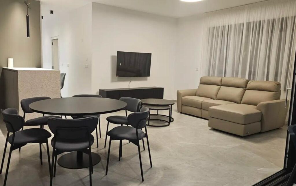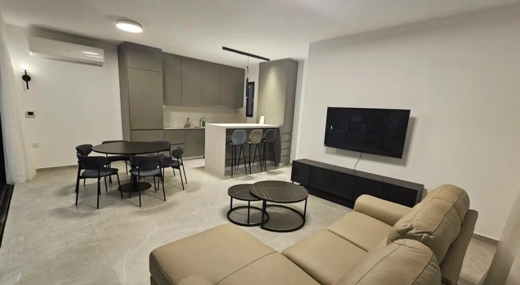 Rent Limassol – Kapsalos 🏡 Modern 2-bedroom apartment for rent ✅ Floor: 1st ✅ Area: 115 m² ✅ Bedrooms: 2 ✅ Bathrooms: 2 ✅ Parking: Open ✅ Fully furnished ✅ Year built: 2024 ✅ Energy efficiency: Class A ✅ Pets: Not allowed Spacious open-plan living room with access to a large covered veranda Modern kitchen with island and stylish lighting Main bathroom with bathtub and separate shower Laundry with washing machine and dryer Pantry and balcony Photovoltaic system reducing electricity costs Price 2150 € Reg:AM: 1256/AA258/E
