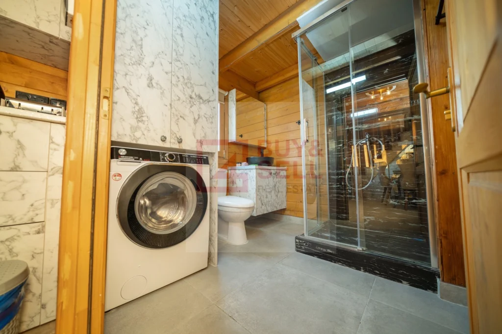 This charming one-bedroom wooden cabin offers a warm and welcoming atmosphere, perfect for individuals or couples. It comes fully furnished and equipped with all essential appliances, including a refrigerator, oven, washing machine, air conditioning, and more.