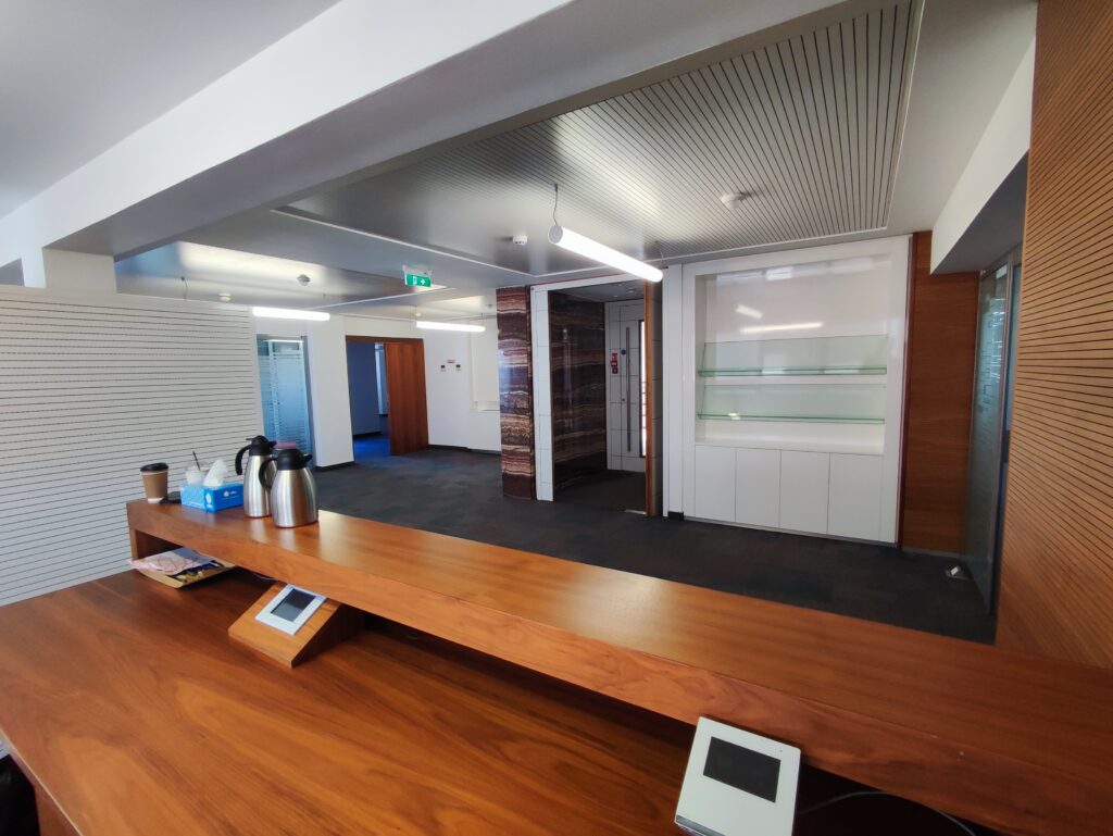 Office arrangement: reception area, open plan area, directors’ office with administration office, private offices, meeting & presentation room