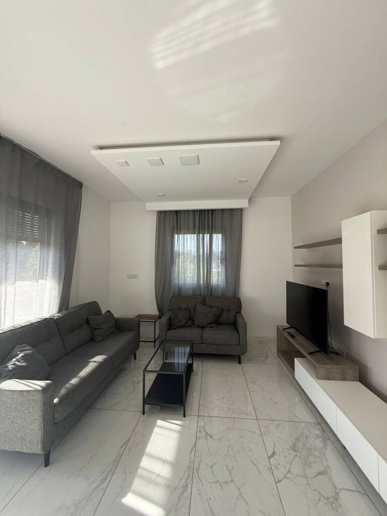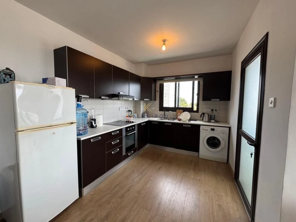 Apartment for rent in Makezy area. The apartment is on the 3rd floor and has internal covered area of 84 sq.m. It consists of an open plan kitchen with dining area, living room, two bedrooms, one main bathroom and an extra toilet. The apartment has19 sq.m covered balcony and enjoys a sea view.