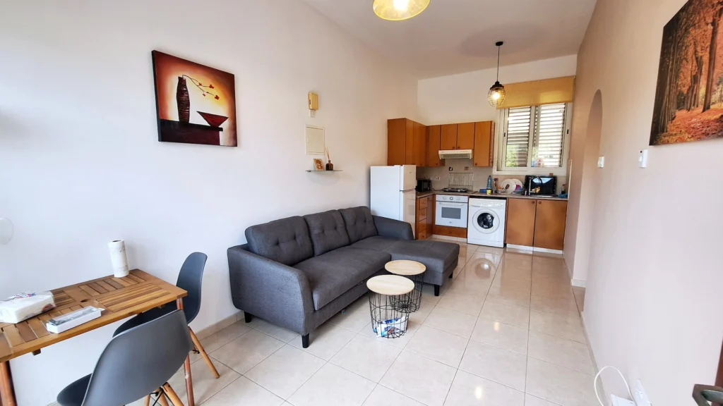 Welcome to this beautifully furnished 1-bedroom, 1-bathroom apartment for rent in the sought-after Mouttalos area of Paphos. Situated on a slightly elevated ground floor, this cozy home offers 50 m² of bright internal living space, designed for comfort and practicality.