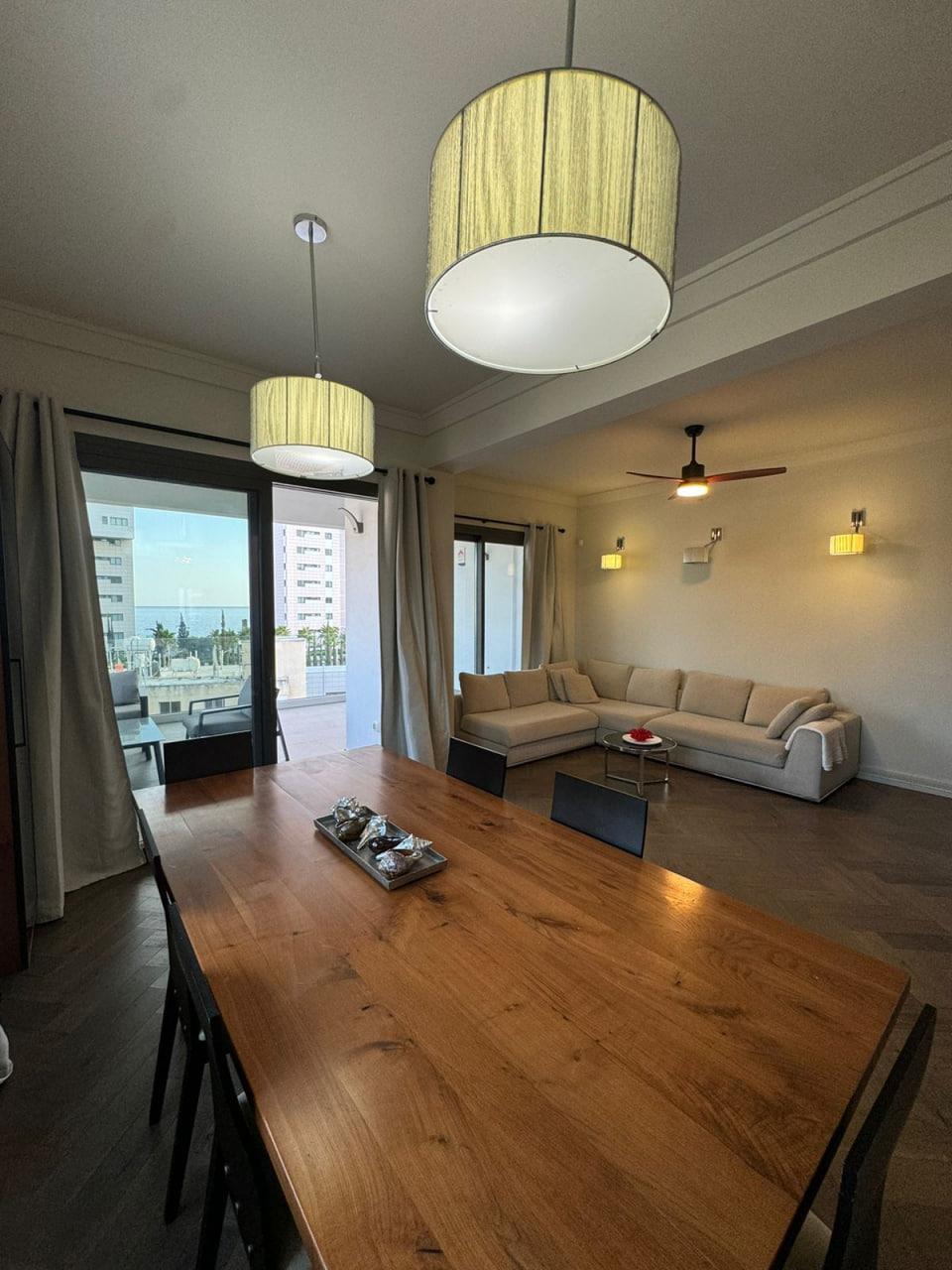 Rent 2-bedroom penthouse by the sea. Unique penthouse, the only apartment on the 4th floor. The apartment is fully furnished and offers modern design, spacious terrace and access to the common roof with panoramic views. Type: Penthouse (2 bedrooms). Floor: 4th (only apartment on the floor). Internal area: 80 m². Veranda: 20 m². Furnishing: Fully furnished. Condition: Freshly painted this week. Parking: Personal space. Common amenities: Communal roof (roof garden). Cost: 3000 € per month. Reg:AM: 1256/AA258/E