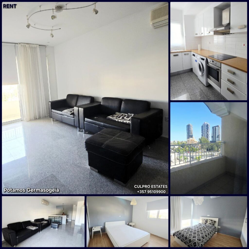 Rent 3 bedroom apartment in a closed complex in the Potamos Germasogeia area, Limassol. All infrastructure and beach within walking distance, next to the Slavjanka store. 5th floor. Will have new sofa, air conditioning in one of the bedrooms, curtains. Living area: 100 sq m. Kitchen. Living room. 3 bedrooms. Bathroom + guest toilet. Balconies. Covered parking. In the complex: pool + tennis court. Price: 1,700. Agency CULPRO Estates Ltd L.N 197/E R.N 1189 +357 95109900 +357 95592209