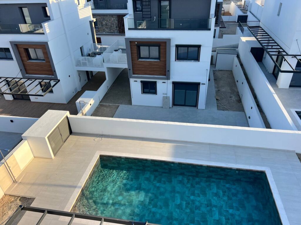 RENT AGIOS TYCHONAS 2 minutes to highway Modern new VILLA in complex 4 bedrooms, 3 bathrooms Pool Price: €5,500 Lic 186/56