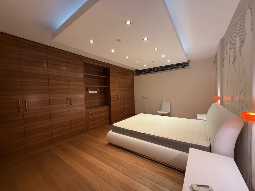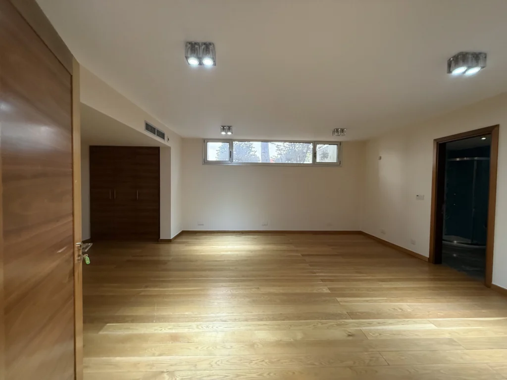 The lower ground floor, with its own separate entrance, offers two additional bedrooms, a state-of-the-art kitchen, luxurious bathroom with jacuzzi and steam bath, and a private gym — ideal for guests or extended family.