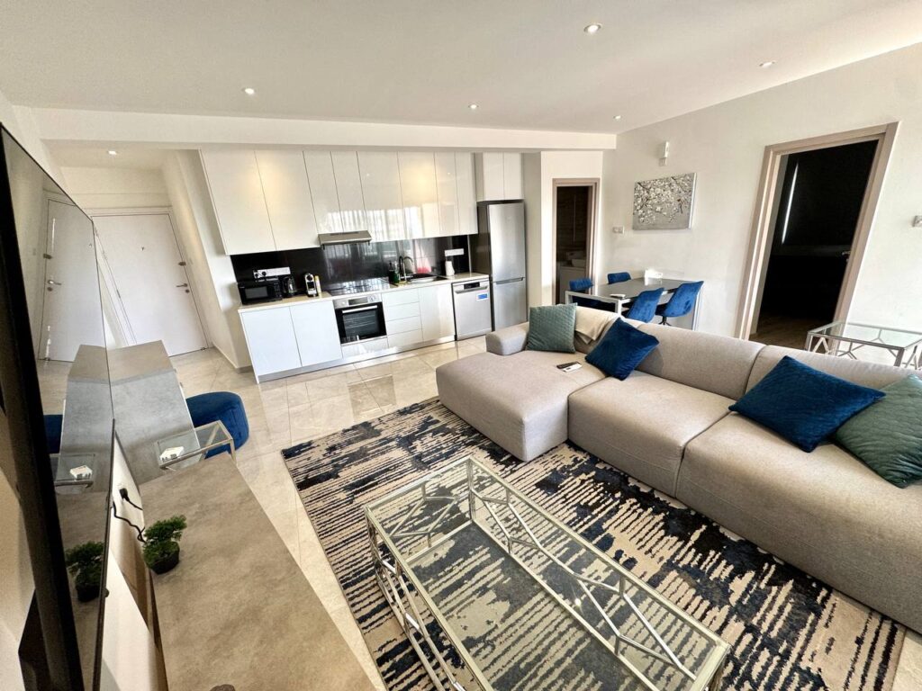 Rent Limassol 2 bedroom 2 bathroom fully renovated apartment in Germasogeia tourist area 6th floor Parking €1850 R.N. 1327 L.N. 652/E