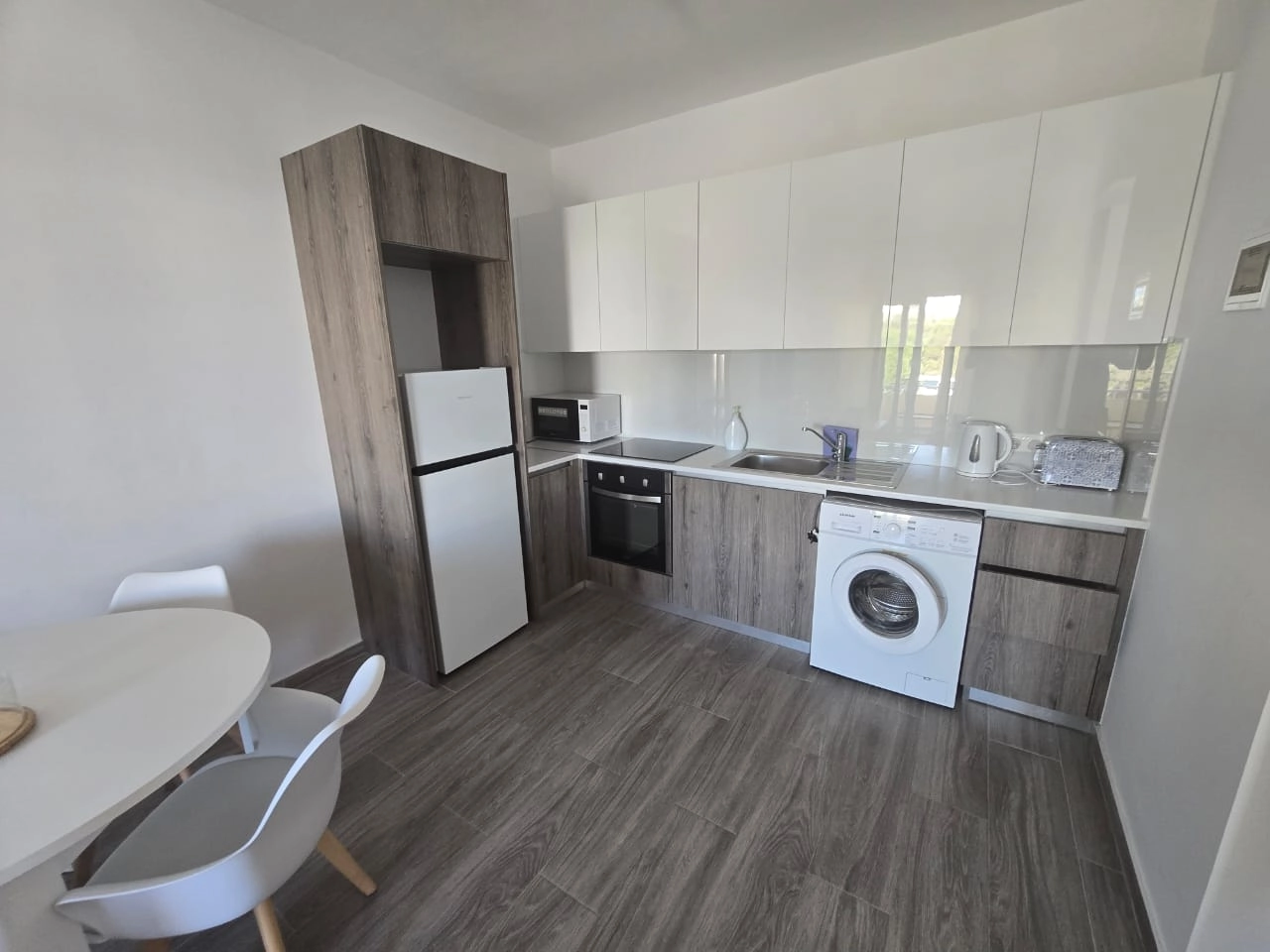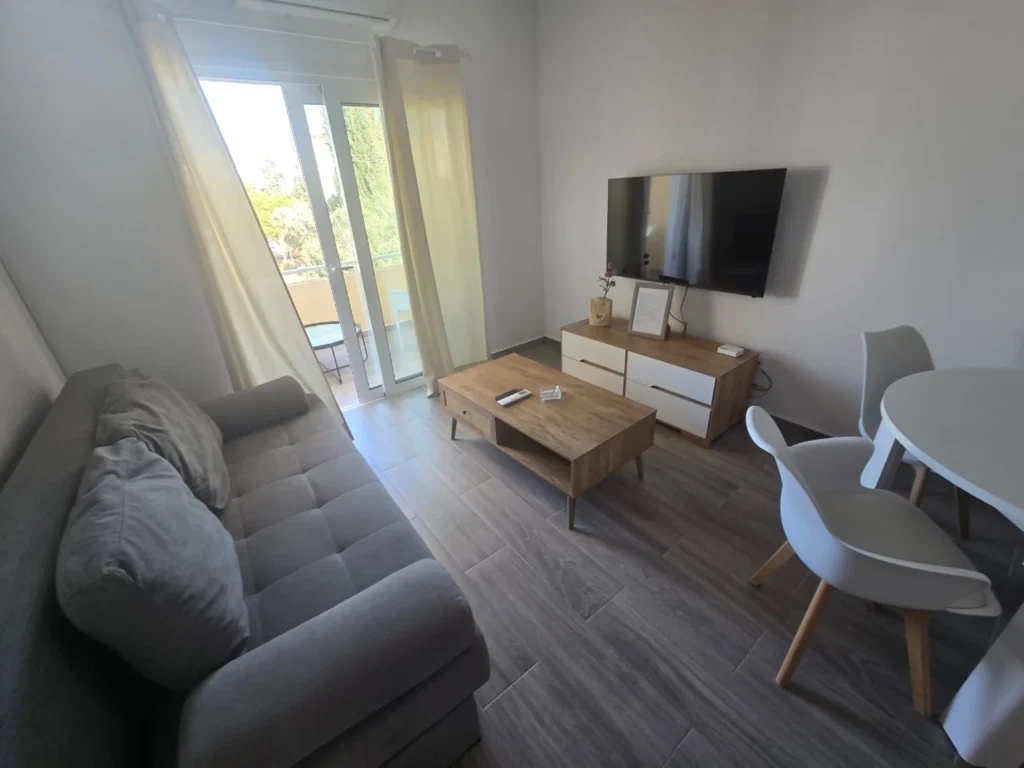 A one-bedroom apartment is for rent in the Protaras area, Famagusta. The total area is 60 m², located on the first floor, fully furnished, with a balcony and air conditioning in all rooms. The apartment has one bedroom, a living room with a TV, and a fully equipped kitchen. Recently renovated, located close to the beach.