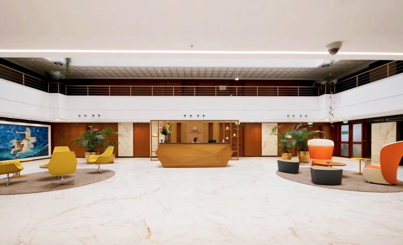 The building provides exceptional amenities such as a main reception area, mail sorting and delivery, camera surveillance of entrances and common areas, and four high-speed elevators connecting all seven floors. Tenants benefit from guest waiting areas, maintenance and cleaning services,