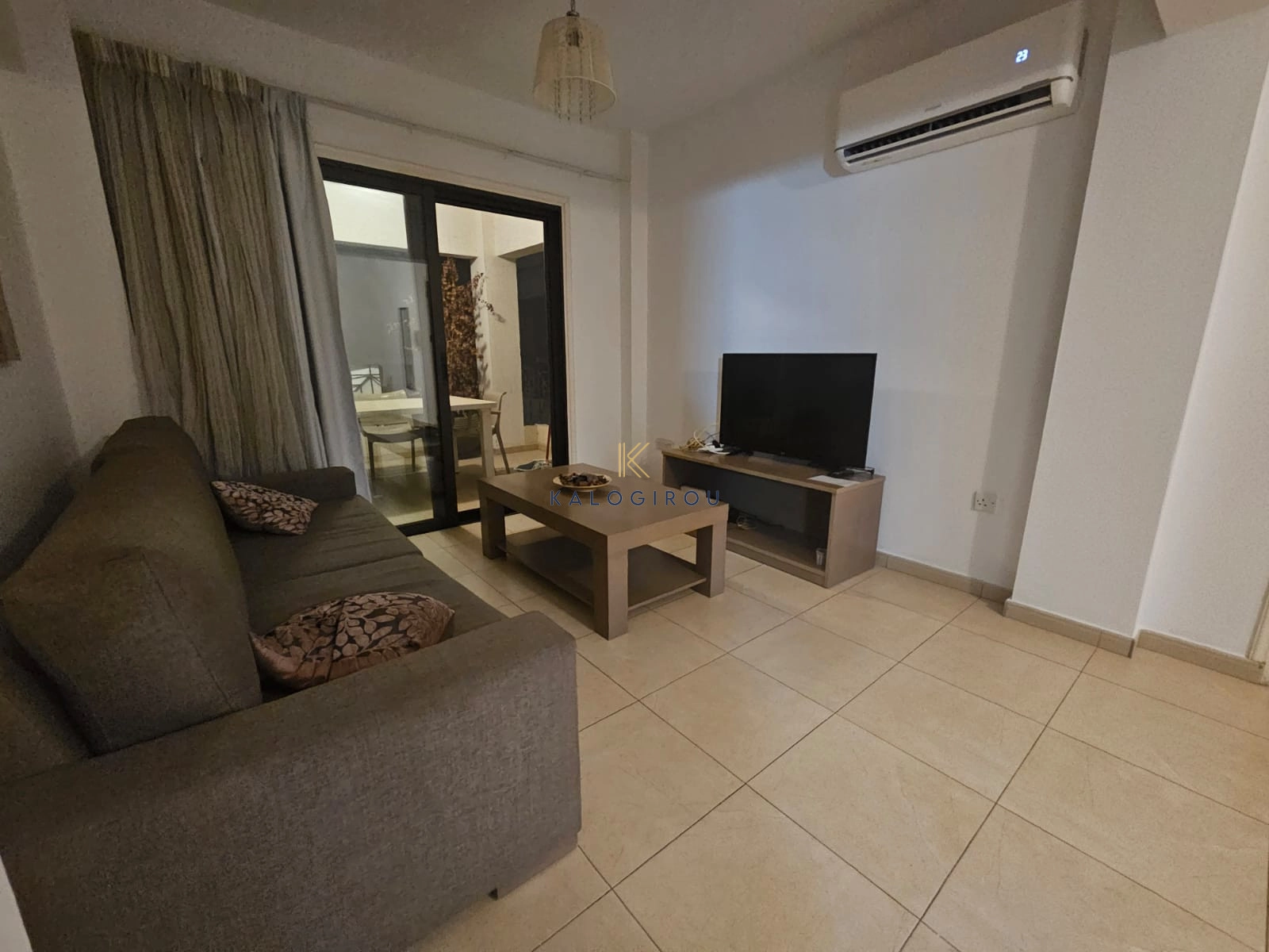 Apartment for rent in Makenzy area, Larnaca. This beautiful apartment consists of an open plan kitchen and dining area, two bedrooms, one common toilet with shower, A/C, storage room, fully furnished, kitchen appliances, covered veranda and covered parking. The area of the property is characterized as touristic. Must be noticed is Walking distance to the sea.