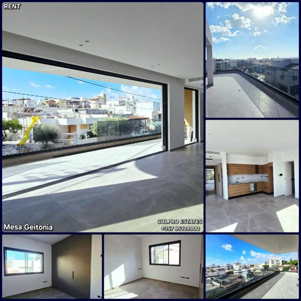 Rent. Available for move-in from 15/11/2025, viewings available. Available 2-bedroom apartments and 2-bedroom penthouses in Mesa Geitonia area, Limassol. All infrastructure within walking distance, not far from Superhome. ♦️New furniture and appliances. Kitchen. Living room. 2 bedrooms. Bathrooms: 2 + guest toilet. Veranda. Terrace for penthouses with BBQ area. Storage room. Parking. Energy efficiency class A. Year of construction: 2025. Photovoltaics for penthouses. Pets negotiable. Price for 1st floor: 2,500 + 1 deposit (negotiable). Price for 2nd floor: 2,700 + 1 deposit (negotiable). Price for 2-bedroom penthouses: 2,900 + 1 deposit (negotiable). Agency CULPRO Estates Ltd L.N 197/E R.N 1189 +357 95109900 +357 95592209