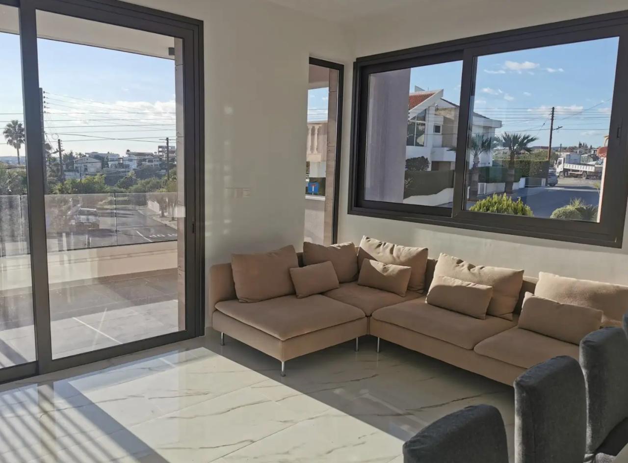Rent Limassol, Pantheas Apartment for rent Modern 2-bedroom apartment with sea view Total area: 90 m² Bedrooms: 2 Bathrooms: 2 (main bathroom + guest WC) Parking: covered Fully furnished Year built: 2021 Energy efficiency: Class A Pets: allowed Included: elevator, balcony, storage room This modern and stylish two-bedroom apartment is located on the 1st floor of a small three-story high-standard building (only 6 apartments total) built in 2021. Rent: 1850 € per month Reg:AM: 1256/AA258/E