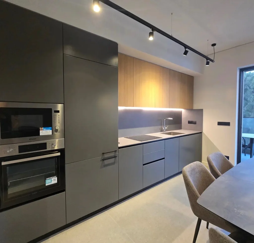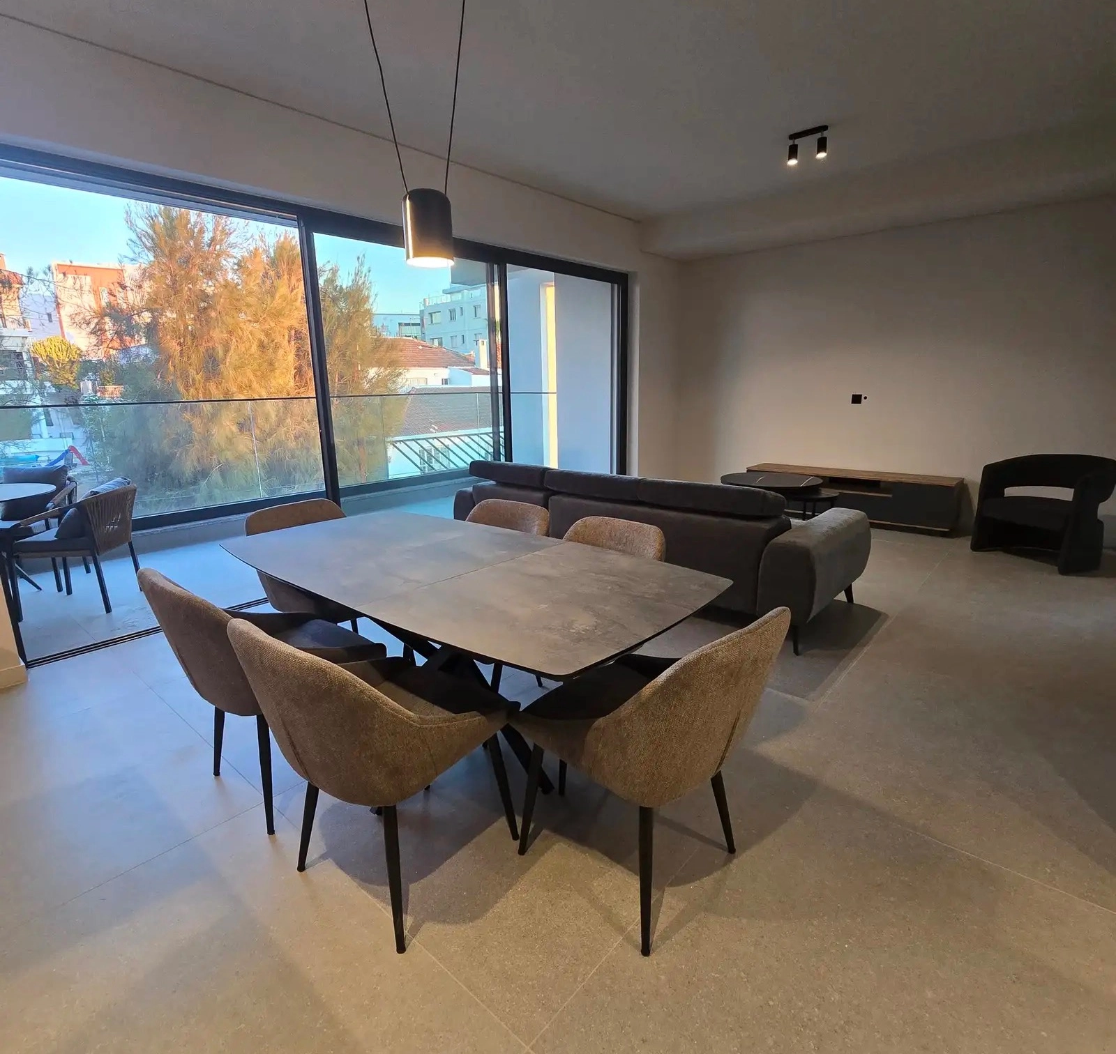 Two-bedroom apartment of 87 m2 for rent in Strovolos – Chryseleousa, Nicosia. The apartment is located on the second floor of a modern building built in 2025 and includes a living room combined with a kitchen and dining area, two bedrooms, two bathrooms, as well as a spacious front balcony of 17 m2 and a side balcony of 3 m2. The apartment is fully furnished and equipped with new appliances: refrigerator with freezer, induction hob, oven, microwave, dishwasher and washer dryer. Air conditioning is installed in all rooms, underfloor heating, double glazing and electric shutters. The complex has an elevator, access control system, covered parking with electronic key access and a spacious storage room. The property is located in a convenient location with quick access to the main roads Athalassas and Strovolou, just a 10-minute drive from the center of Nicosia and the highway to Larnaca/Limassol. Bakeries, pharmacies, cafes, restaurants, gyms, El Greco Medical Center, Makario Hospital, The English School and The Junior School, Pernera Elementary School, Agios Dimitrios and Pedieos Linear Park parks are within walking distance.