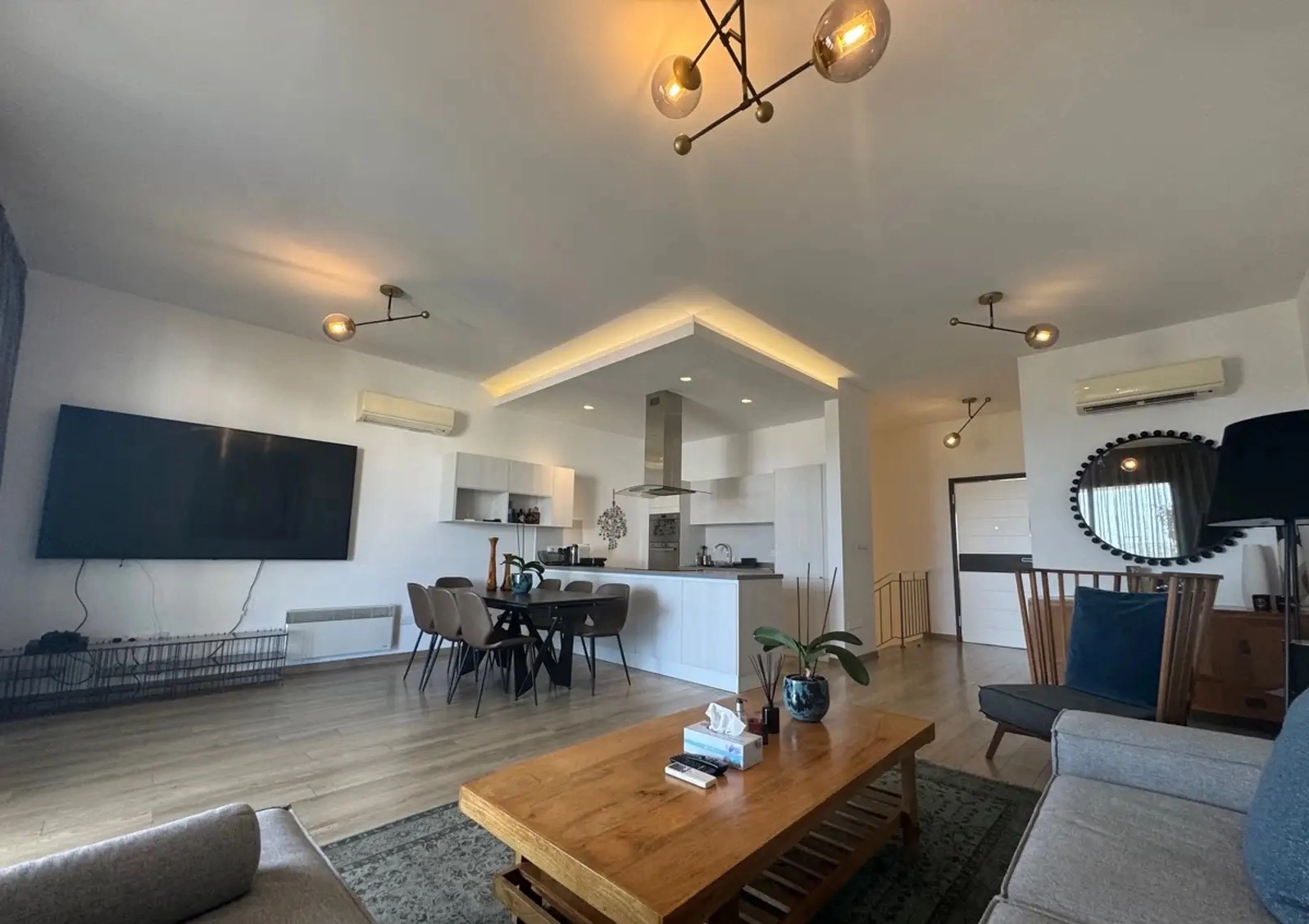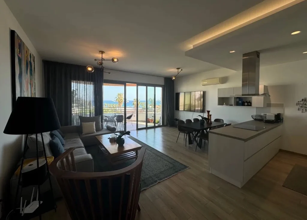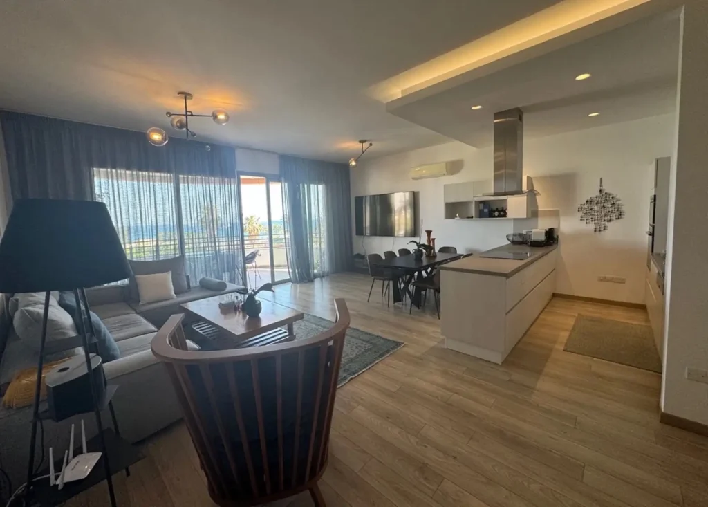 Two-bedroom apartment of 166 m2 for rent in Neapolis, Limassol. The apartment occupies the 4th floor and includes two bedrooms, three bathrooms, a spacious living room, a kitchen and a balcony. The property is fully furnished and equipped, with full air conditioning in all areas, as well as covered parking. The building has elevator access, the facility was built in 2015 and meets energy efficiency class A. The apartments are conveniently located within walking distance of the beach and the city center, which makes them an excellent option for a comfortable stay in the heart of Limassol.
