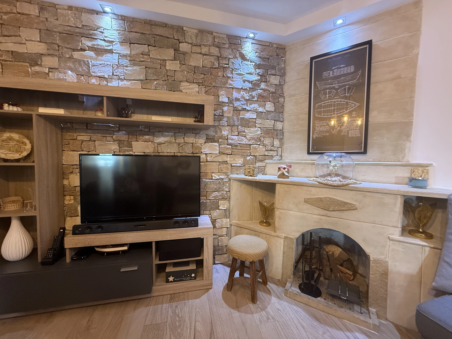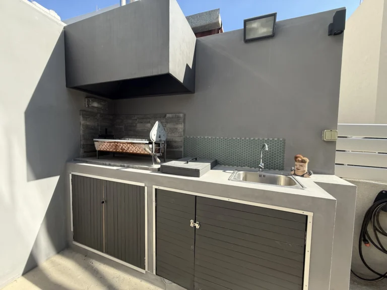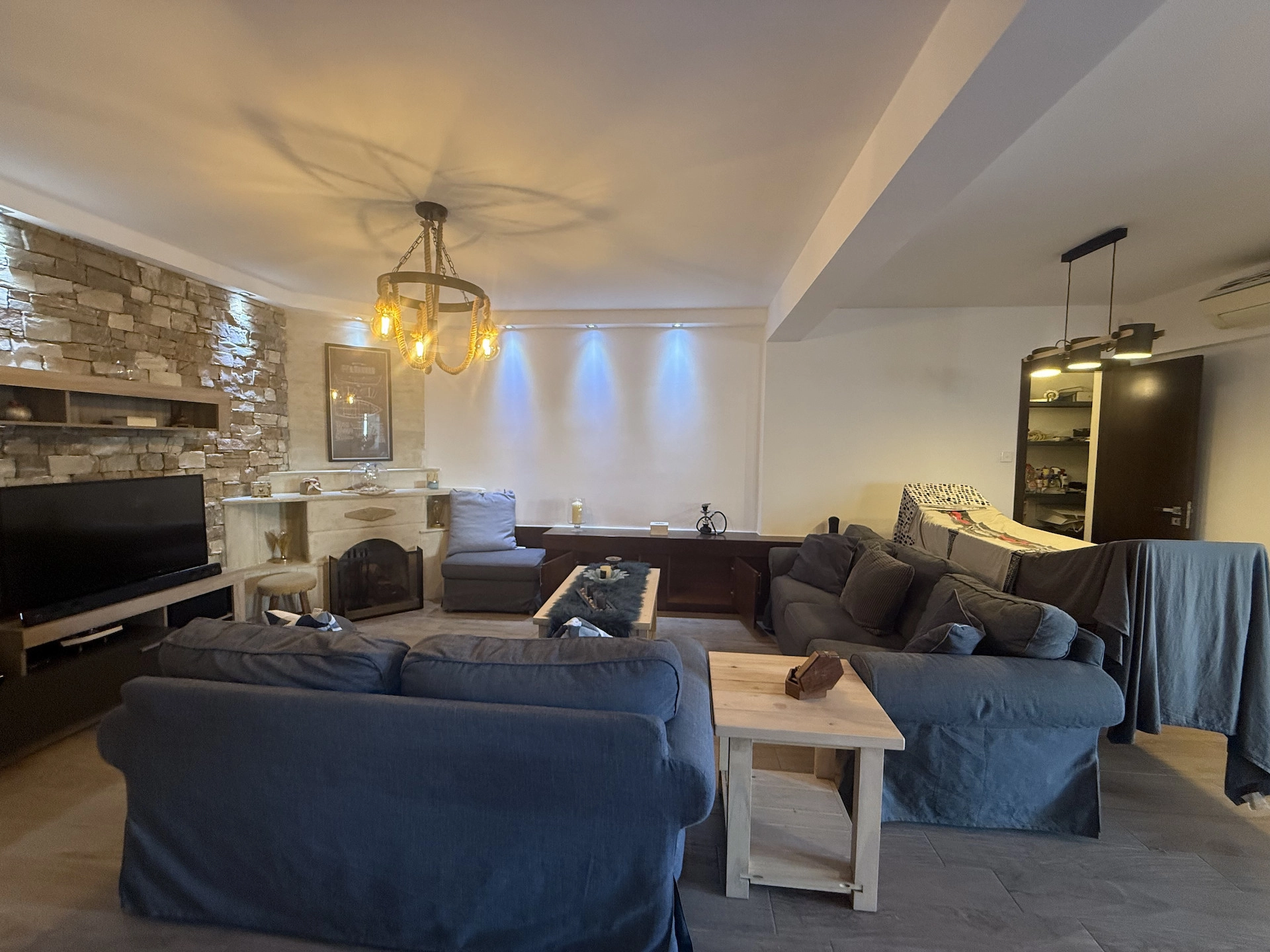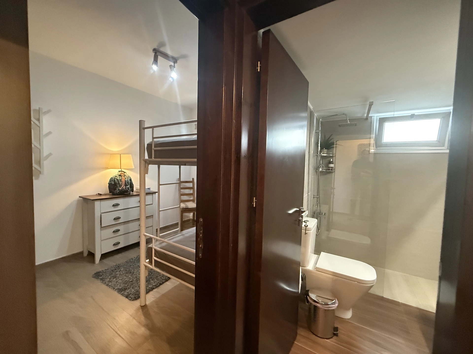 The residence features a fully equipped kitchen and breakfast/dining area, complete with cutlery, utensils, and brand-new electrical appliances, including modern air-conditioning units.