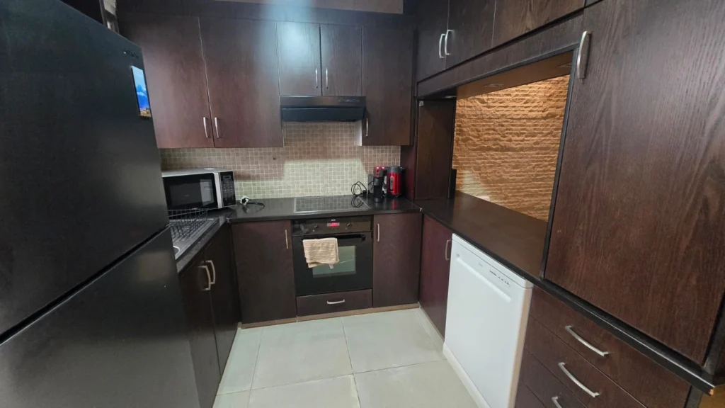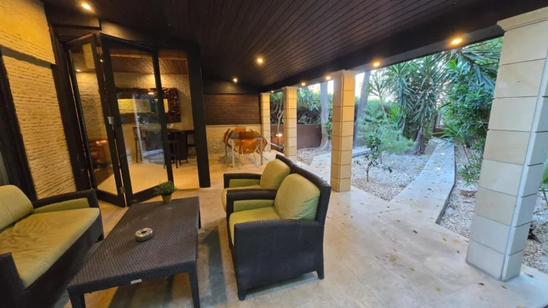 Beautifully renovated and fully furnished ground-floor townhouse located in a gated complex with a communal swimming pool and tennis court, right on the Parekklisia tourist road — within walking distance to the beach, bus stops, shops, cafés, and restaurants.