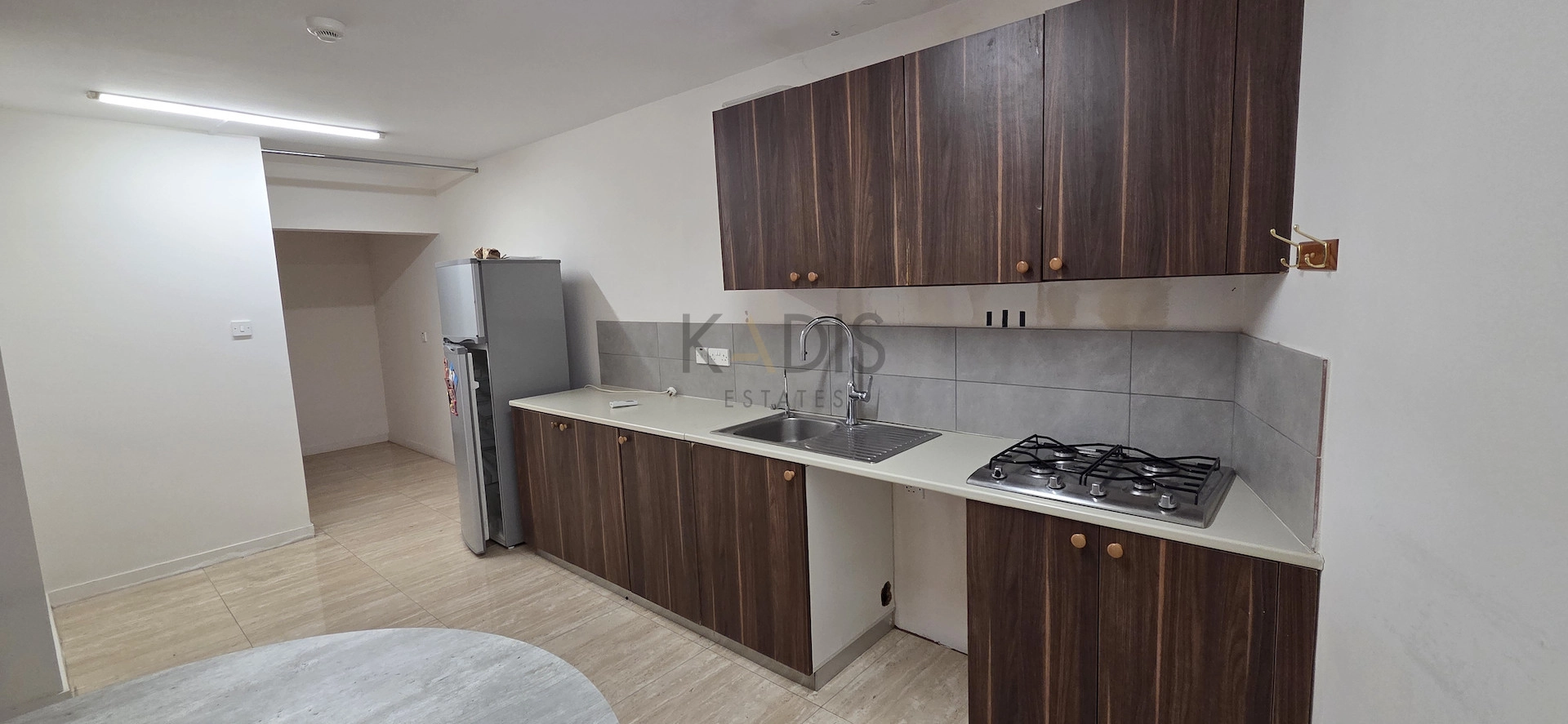 •Kitchen with fridge/freezer, hob and extractor fan