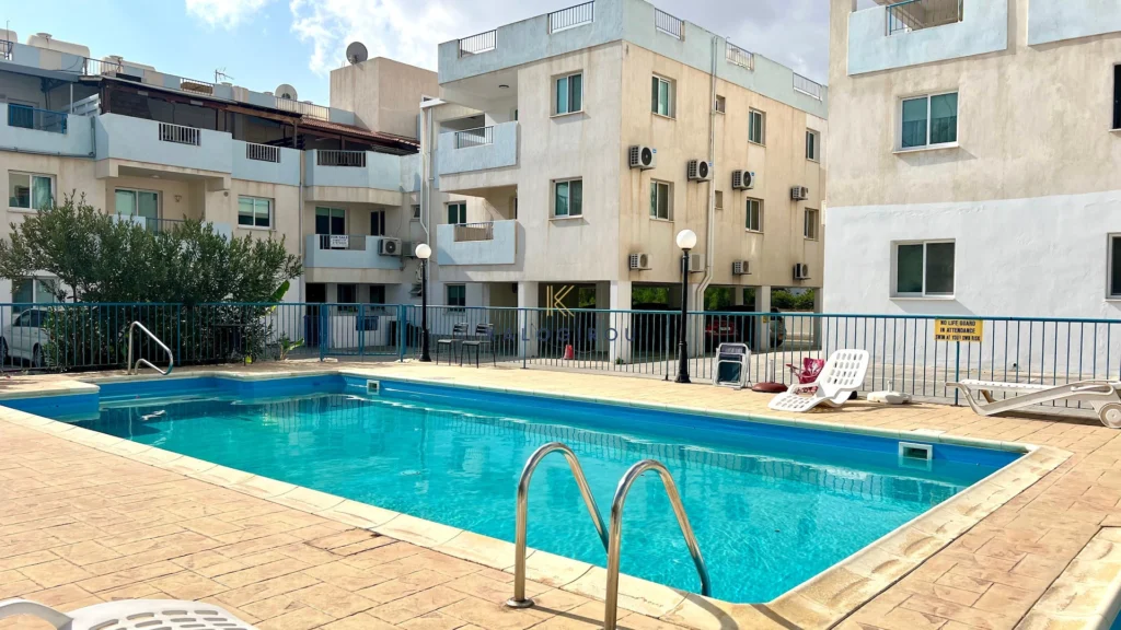 Apartment for Rent in Oroklini area, Larnaca. The property consists of a kitchen-living room as an open space, one bedroom, one bathroom with W/C and a covered veranda. The complex also has a communal swimming