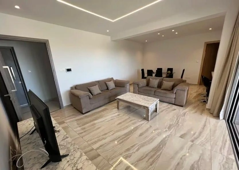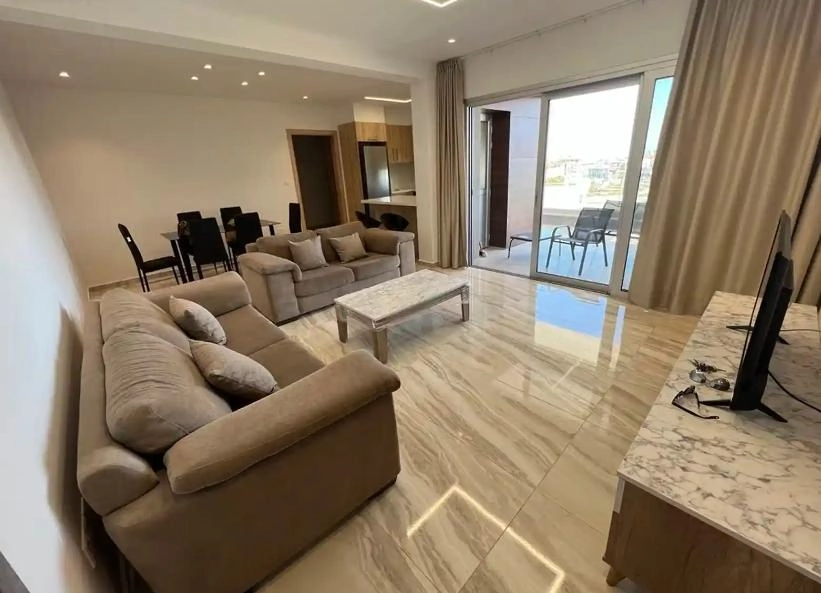 For rent a two-bedroom penthouse of 85 m2 in the area of Kato Polemidia, Limassol. The penthouse includes two bedrooms (one of them with a private bathroom), two bathrooms with a shower, a kitchen, a living room, a dining room, a pantry, a 107 m2 veranda, a barbecue area and a spacious rooftop. The apartment is fully furnished and equipped with all necessary appliances. Two covered parking spaces and a separate storage room are available. The apartment is located on the 3rd floor. The building was built in 2023 and is located next to Sklavenitis Monovoliko and Pilakoutas, in a convenient location with quick access to the entire infrastructure of Kato Polemidia, Limassol.