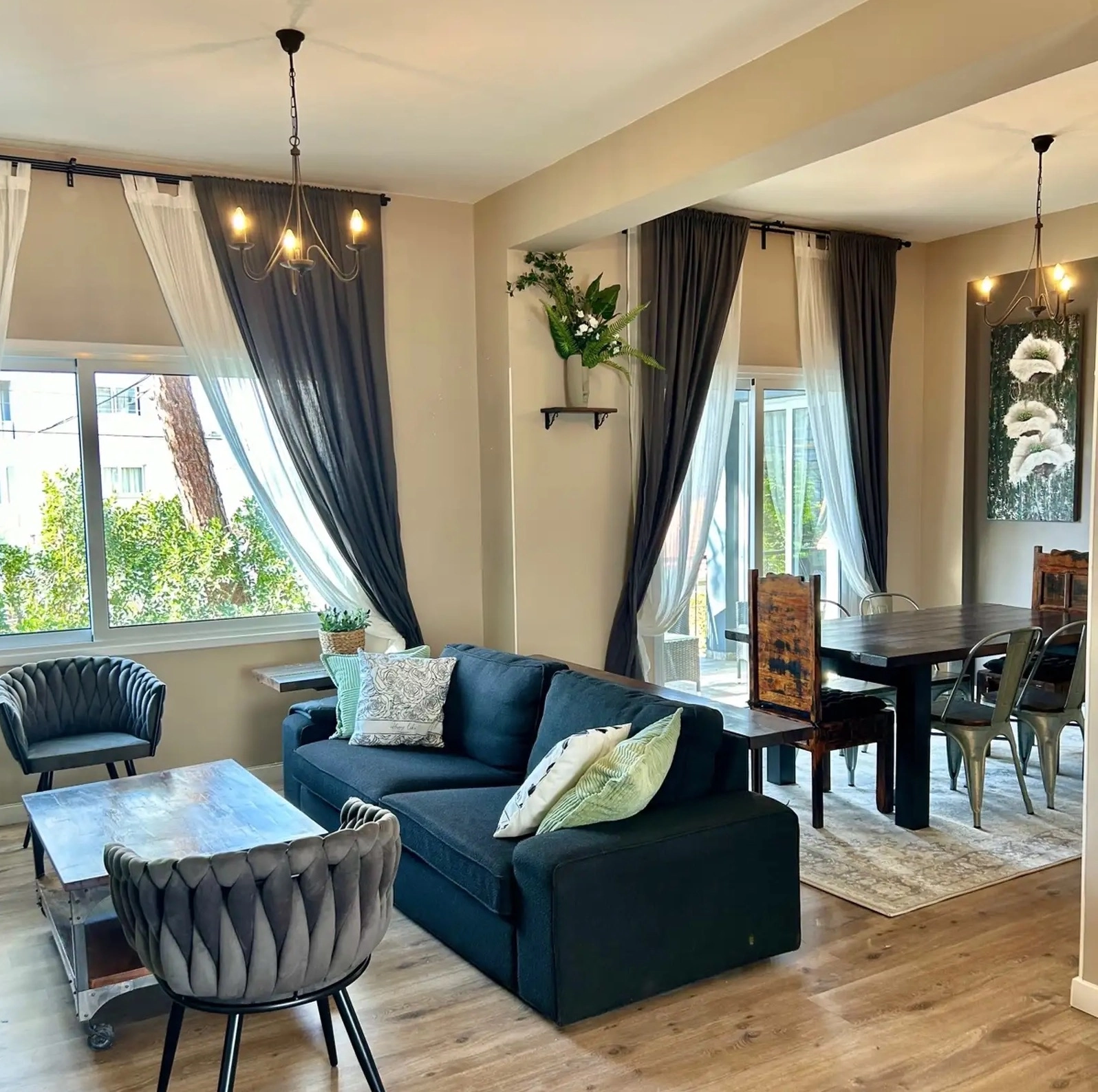 For rent a four–bedroom house of 200 m2 in the area of Strovolos – Acropolis, Nicosia. The residence includes three spacious bedrooms and two bathrooms in the main house, as well as an independent guest studio with its own kitchen, bathroom and private terrace. The house is fully furnished and equipped with all household appliances, including new kitchen appliances, a full set of dishes and utensils, air conditioners in all rooms and laminate floors. The house stands out for its fresh designer renovation, high-quality finishes and excellent layout. The interior is completely renovated, there are built-in wardrobes. The house has a spacious terraced roof garden with a pergola among pine trees, as well as a quiet private front patio. Covered parking is provided. The property is located in one of the most sought-after locations, within walking distance of cafes, supermarkets, shops, restaurants, prestigious schools, Acropolis Park, KPMG offices, Foodie and The Landmark.