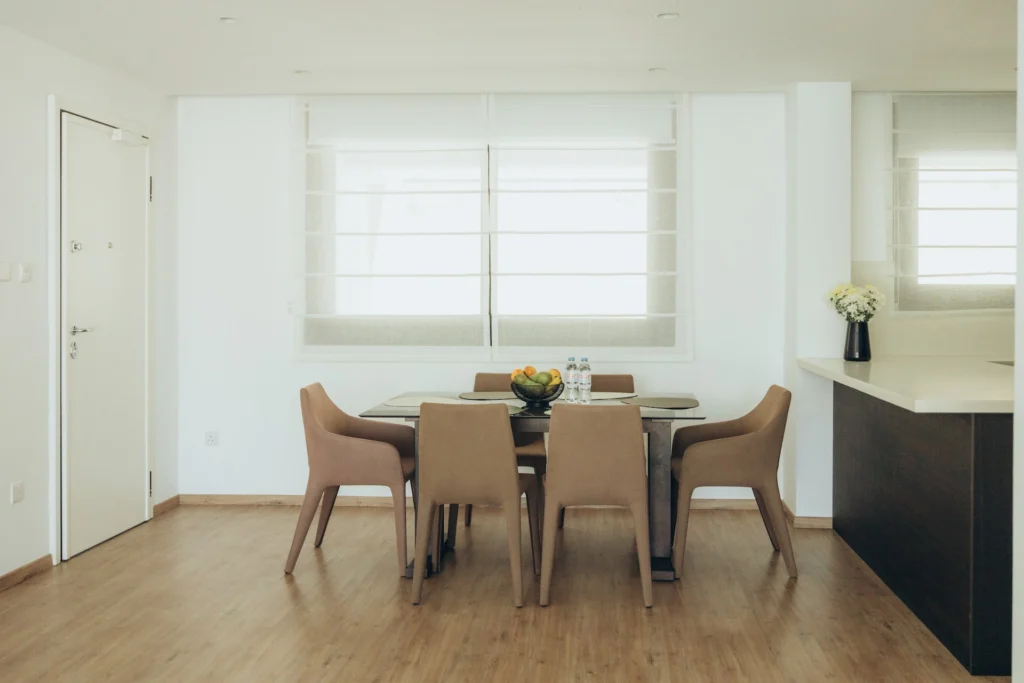 The open-plan living and dining areas are flooded with natural light, creating a welcoming and relaxed atmosphere. The spacious design offers plenty of room for entertaining or enjoying quiet time with family. The modern kitchen comes fully equipped, ensuring convenience for your daily living.