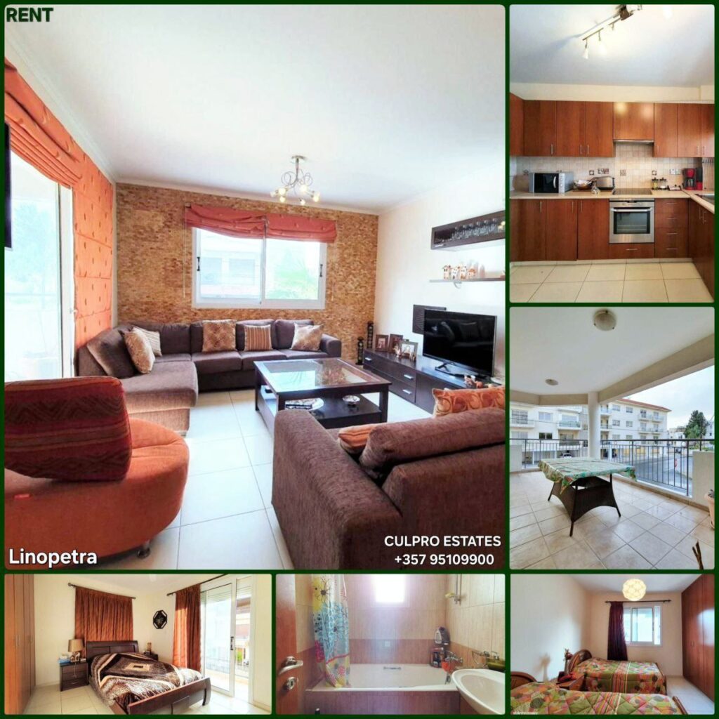 Rent 3 bedroom apartment in the Linopetra area, Limassol. All infrastructure within walking distance, not far from the Ajax hotel. 1st floor. Living area 94 sq m. Total area 118 sq m. Kitchen. Living room. 3 bedrooms. Shower + bathroom rooms. Veranda 23 sq m. Storage room. Parking. Year of construction 2007. Price: 1,700. Agency CULPRO Estates Ltd L.N 197/E R.N 1189 +357 95109900 +357 95592209