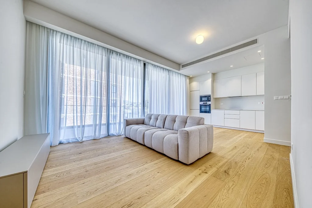 Residents enjoy access to excellent communal facilities, including a swimming pool, gym, sauna, and covered parking. The interiors feature high ceilings of 3.15 meters, high-quality finishes, underfloor heating, and air conditioning throughout. Located in the heart of the tourist area, the apartment is surrounded by shops, cafés, upscale restaurants, and the vibrant atmosphere of coastal Limassol.